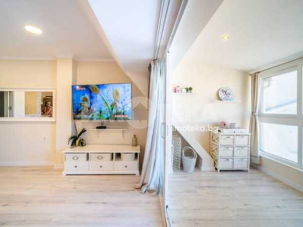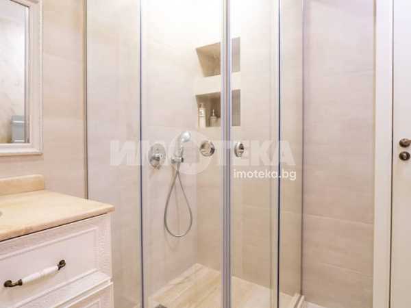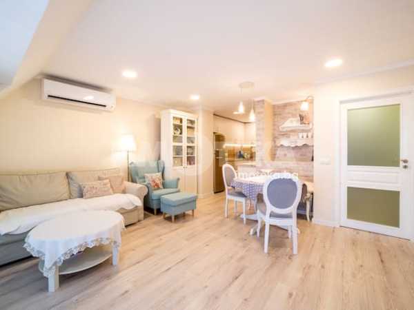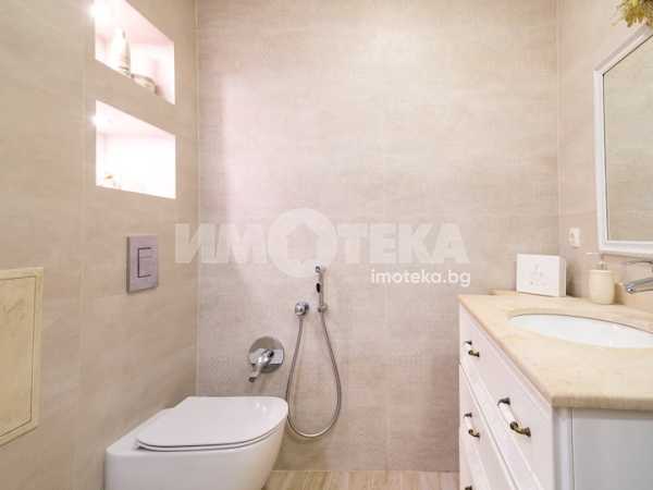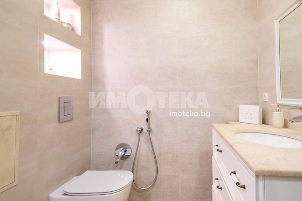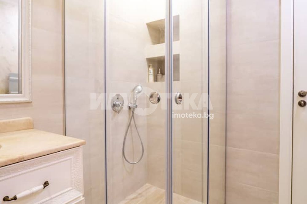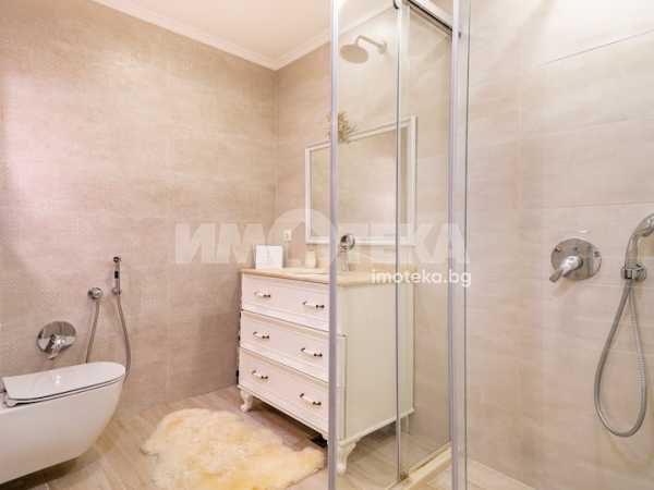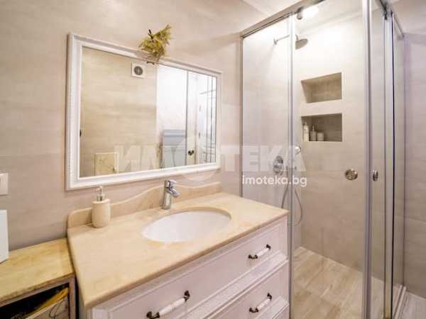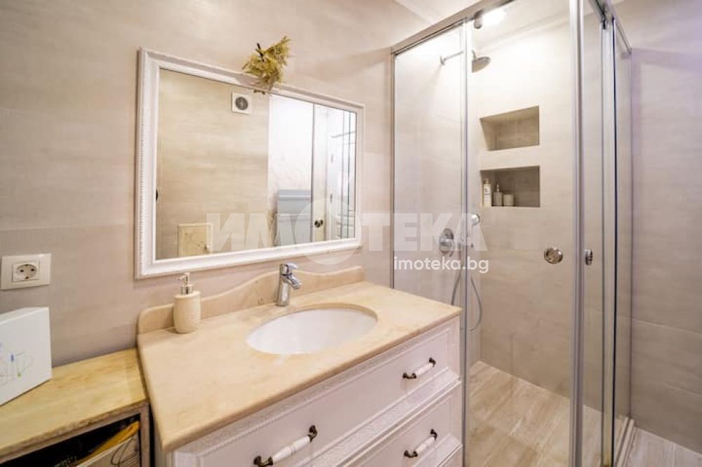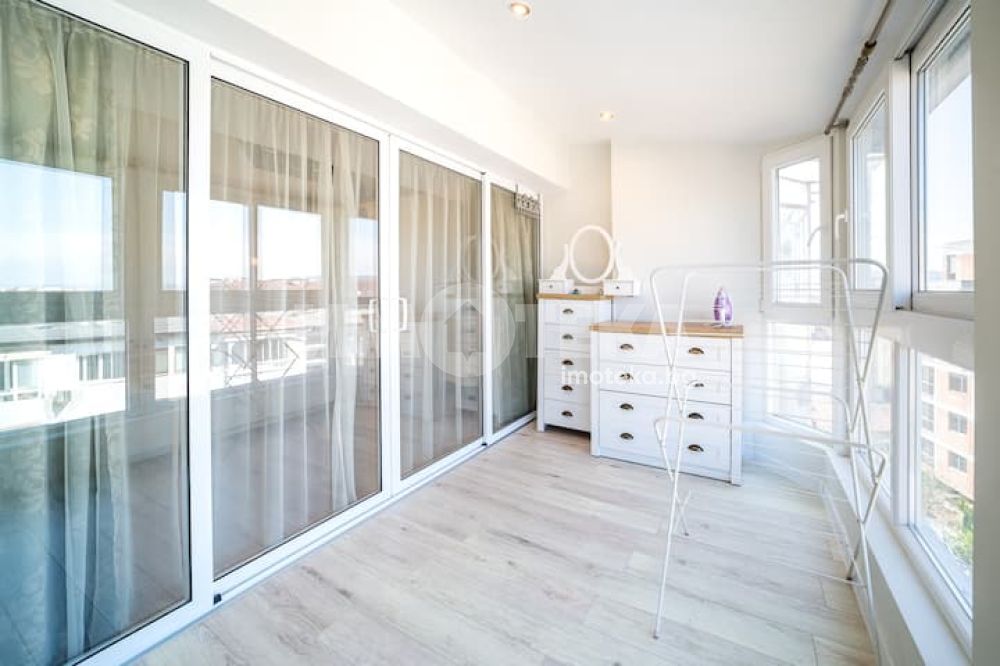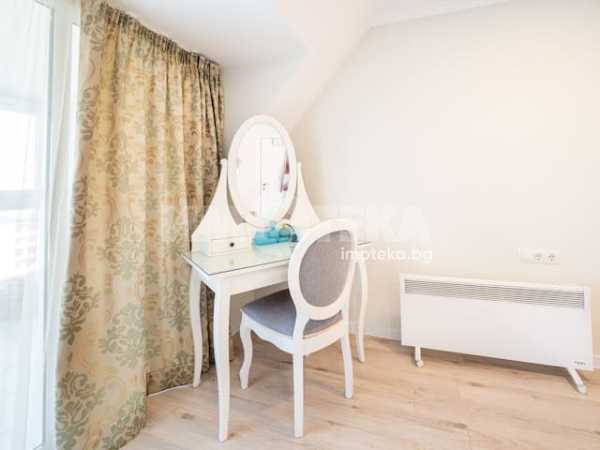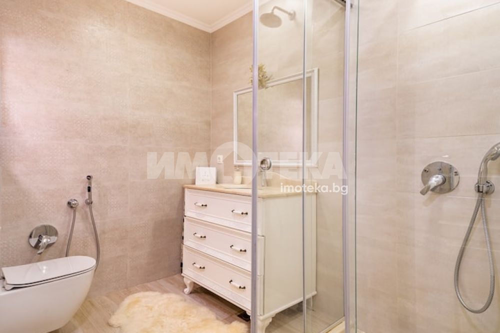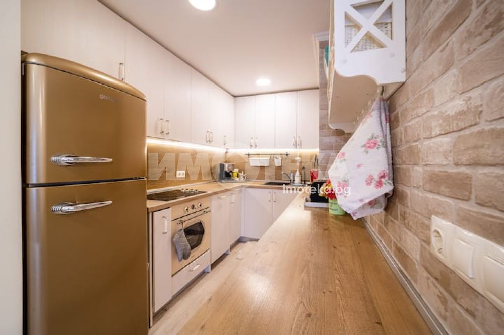 Дизайнерски обзаведен двустаен апартамент,изключително елегантен и стилен.Състои се от просторна слънчева дневна с мека мебел,маса за хранене,отделен кухненски кът с модерна вградена кухняоборудвана с бяла техника,вкл.съдомиялна машина;голяма закрита тераса към дневната;спалня с легло-спалня,гардероб;закрита тераса къмспалнята;баня,тоалет,перално помещение/пералня,сушилня/.