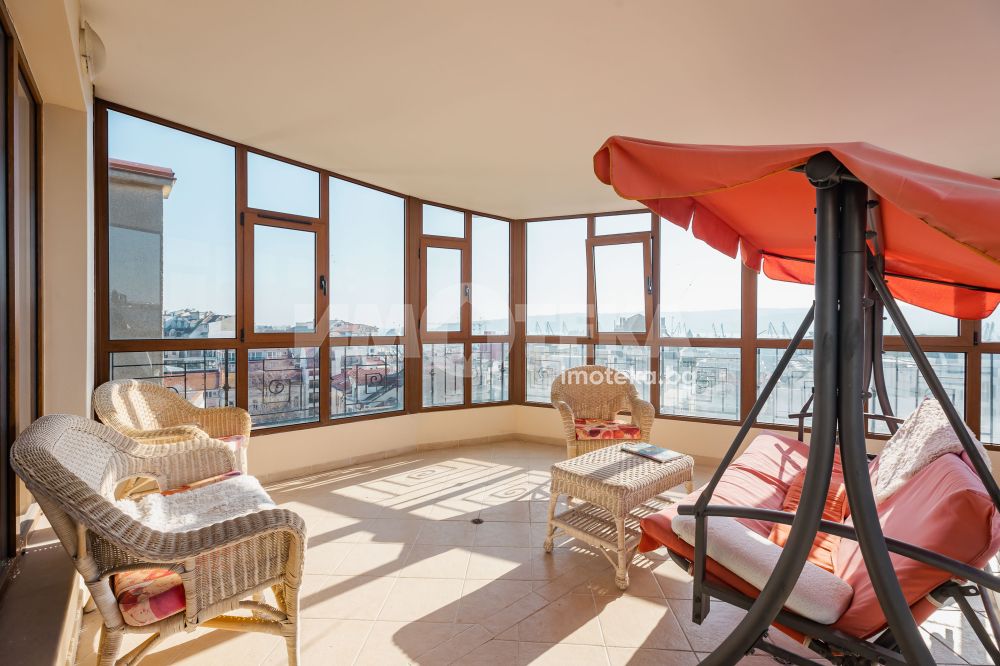 Адрес недвижими имоти предлага пентхаус на две нива, разположен в самото сърце на гр. Варна, в непосредствена близост до Операта.Жилището обхваща целите последни два етажа на сградата с панорамна гледка към Варненския залив. Разпределение: на първо ниво- входно антре, просторна южна дневна с кухня-трапезария с панорамна тераса, спалня с достъп към тераса, втора спалня, два санитарни възела, голяма усвоена тераса, с възможност да бъде обособена като още една спалня или продължение на дневния тракт. Второто ниво е със следното разпределение: спалня, тоалет, голяма закрита панорамна тераса с уникална морска гледка, с възможност да се преустрои и в стая спрямо нуждите на новите собственици.