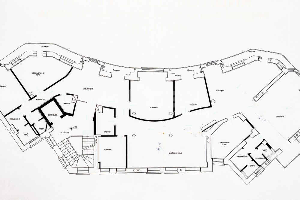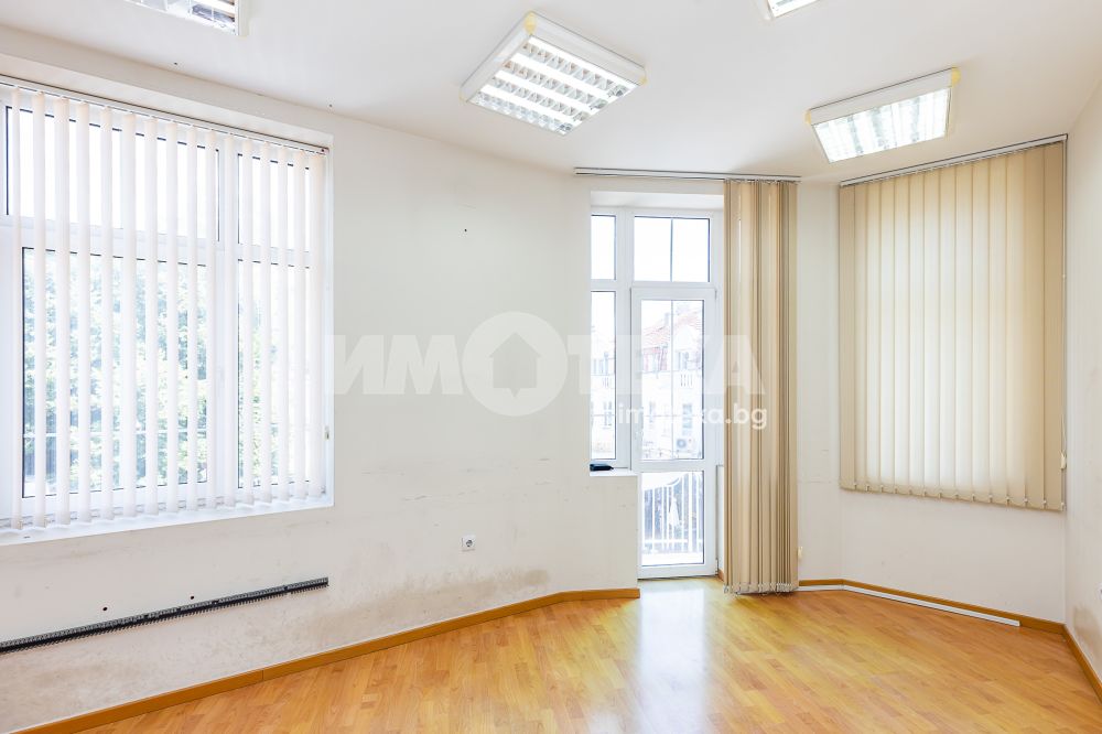 Офис разположен на целия първи етаж в бизнес сграда в идеалния център на гр.Варна. Състои се от: десет различни по големина работни помещения, кухня, три санитарни помещения и сървърно. Състоянието е отлично. Сградата разполага с рецепция, видеонаблюдение, денонощен достъп.