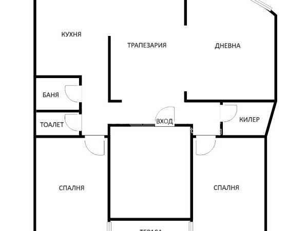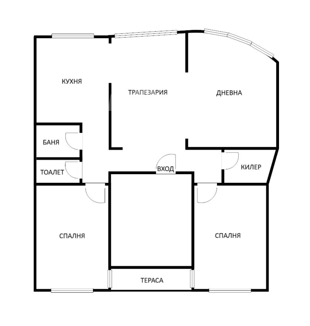 Жилището има следното разпределение: входно антре с просторен килер/дрешник, кухня, трапезария, дневна, 2 спални с излаз на обща остъклена тераса, баня и отделна тоалетна. Възможно е преустройство на апартамент с три отделни спални.