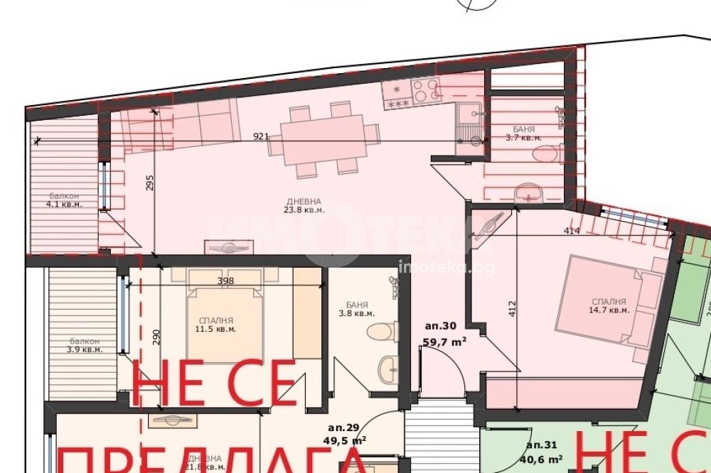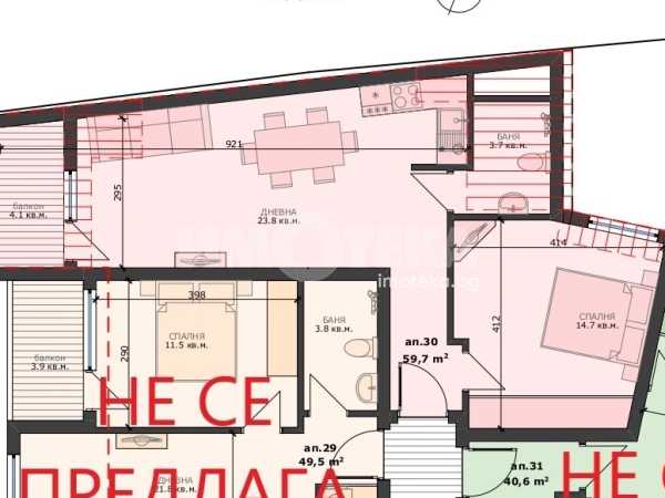Просторна дневна с кухненски бокс, с възможност за обособяване на холова и трапезарна част