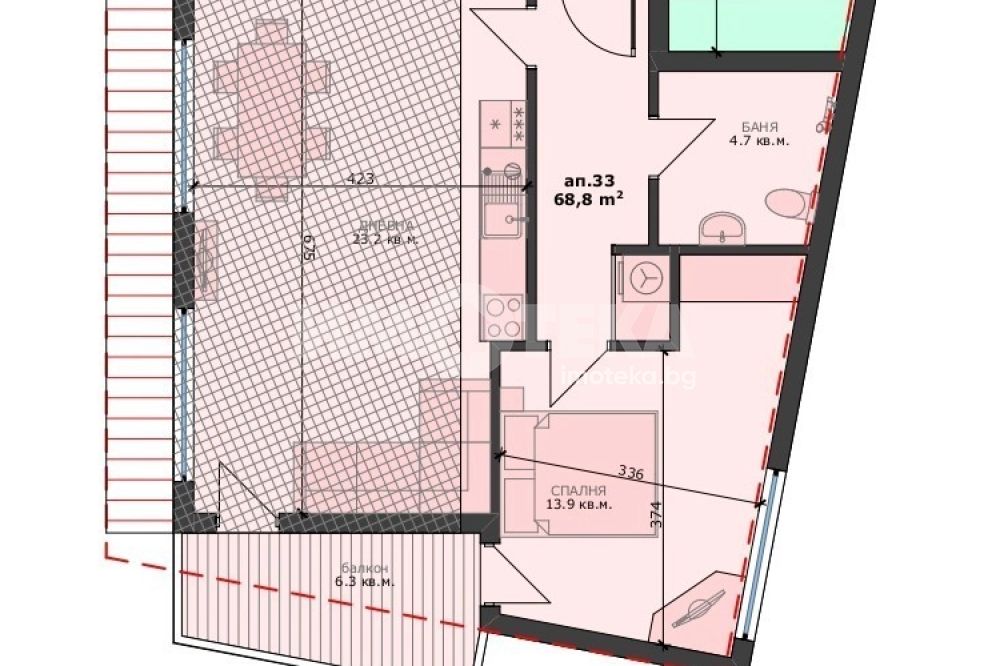 Апартаментът е подходящ както за живеене, така и за инвестиция. Издава се по БДС – на шпакловка и замазка, с PVC дограма, входна блиндирана врата и изградени инсталации.