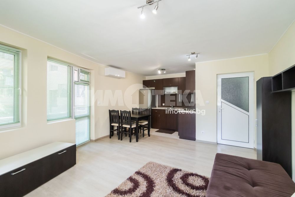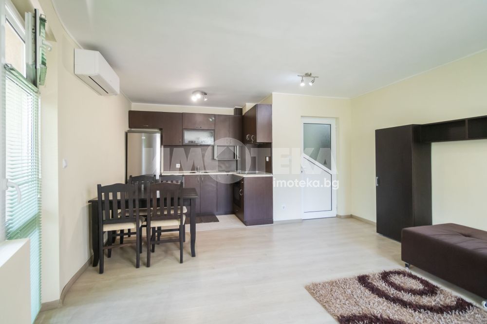 Двустайно жилище, приятно и напълно обзаведено. Представлява дневна, спалня, санитарен възел, две тераси, входно антре. Отоплява се с климатик в дневната.