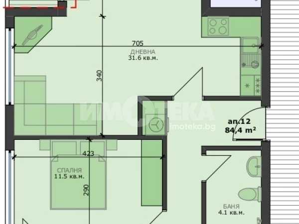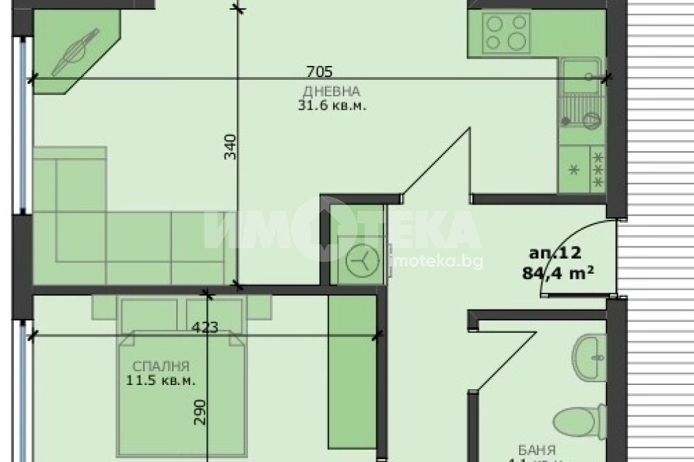 Дневна с кухненски бокс: 32 кв.м – с чудесно обособени кътове за кухня, трапезария и холова част