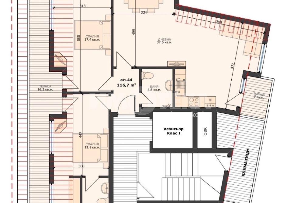 Две спални, едната от които е родителска със самостоятелна баня и гардеробно помещение