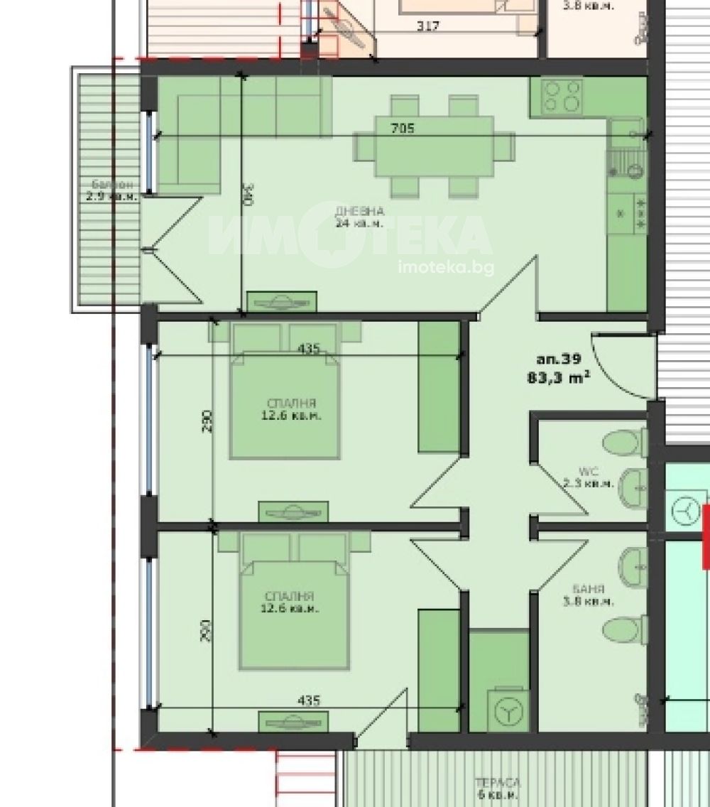 В продажба тристаен апартамент в район Погреби, Жилището се намира на седми етаж с площ от 110 кв.м.. Състои се от две спални, дневен тракт, комбиниран санитарен възел, балкон. Степен на завършеност БДС.