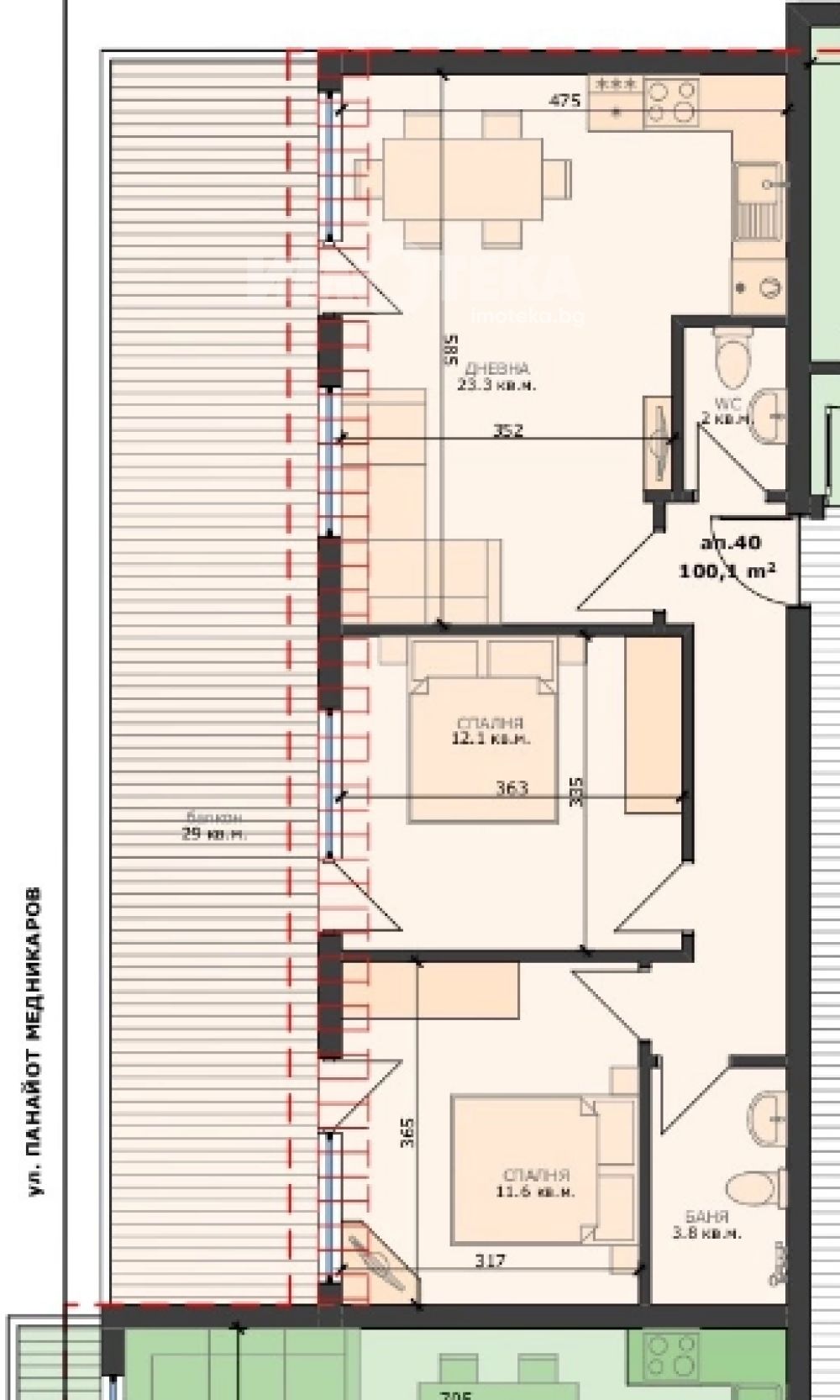 В продажба тристаен апартамент в район Погреби, Жилището се намира на седми етаж с площ от 115 кв.м.. Състои се от две спални, дневен тракт, комбиниран санитарен възел, балкон. Степен на завършеност БДС.