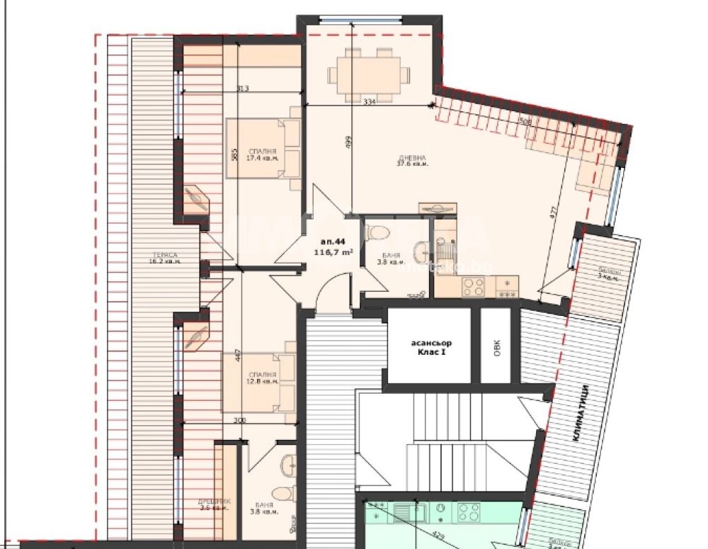 В продажба тристаен апартамент в район Погреби, Жилището се намира на осми етаж с площ от 136 кв.м.. Състои се от спалня - 17 кв.м. втора спалня с дрешник и сабствен санитарен възел, дневен тракт - 38 кв.м, два комбиниран санитарен възел, балкон и тераса 17 кв.м.. Степен на завършеност БДС.