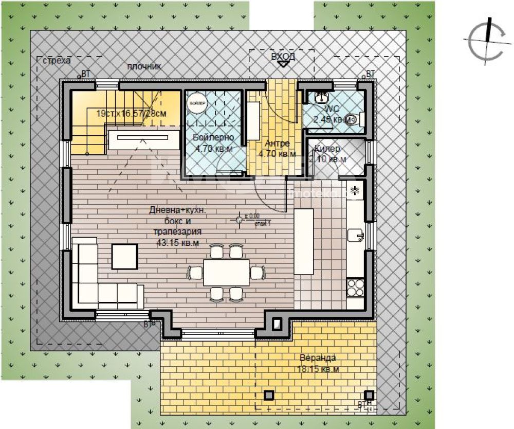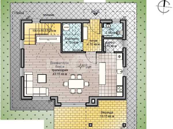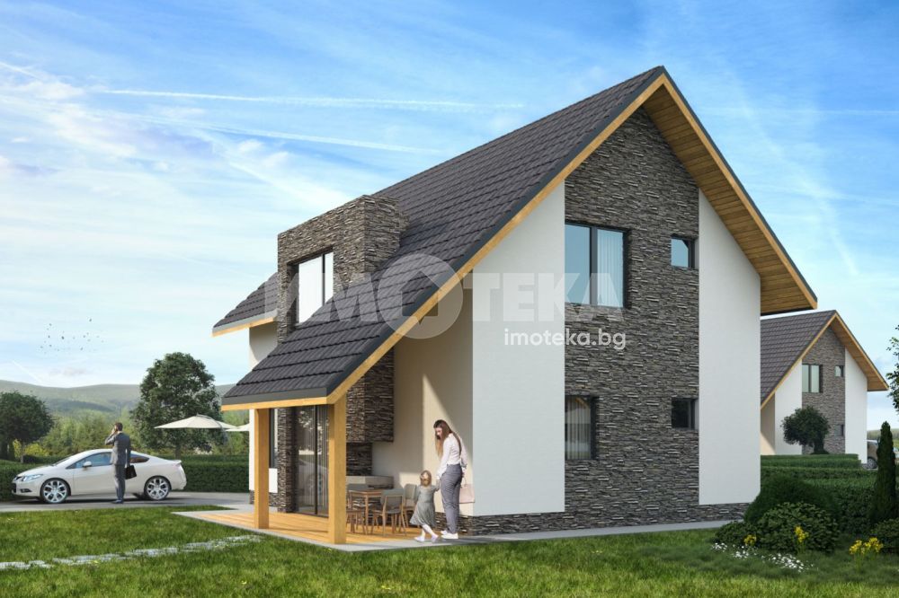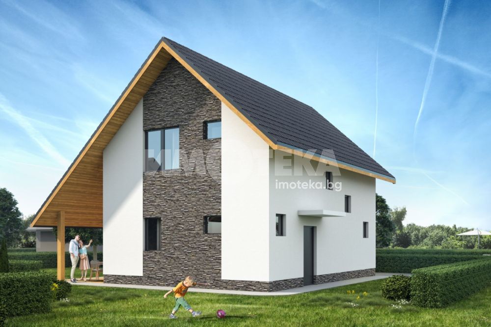 АДРЕС предлага новострояща се къща в с.Звездица. На първи етаж са разположени входно антре, просторна дневна с кухненска част - 43 м2, килер, тоалетна, бойлерно помещение. Пред дневната е предвидена голяма, покрита веранда - 18 м2. На втори етаж са разположени три спални - 17 м2, 14 м2, 12 м2 и просторна баня с тоалетна.