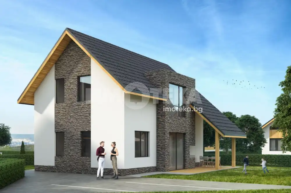 АДРЕС предлага новострояща се къща в с.Звездица. На първи етаж са разположени входно антре, просторна дневна с кухненска част, килер, тоалетна, бойлерно помещение. Пред дневната е предвидена голяма, покрита веранда. На втори етаж са разположени три спални и просторна баня с тоалетна.