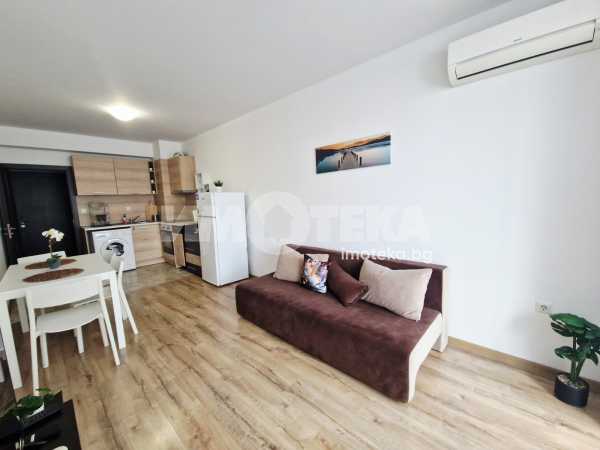 Новообзаведен и новооборудван апартамент след основен ремонт. Жилището се състои от: дневна с вградена кухня (мека мебел, секция, пералня, хладилник, посуда, климатик), голяма спалня (две единични легла, гардероб, ТВ, климатик), остъклен балкон (кухненски шакофе и фурна, маса, столове), баня/тоалет заедно, входно антре с нисша с гардероб.