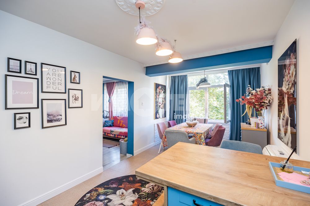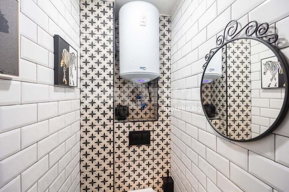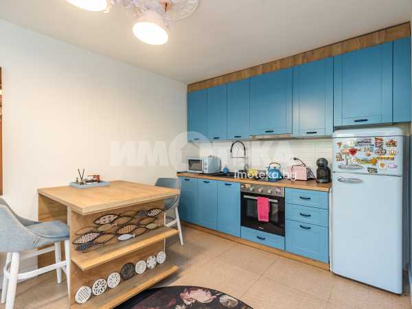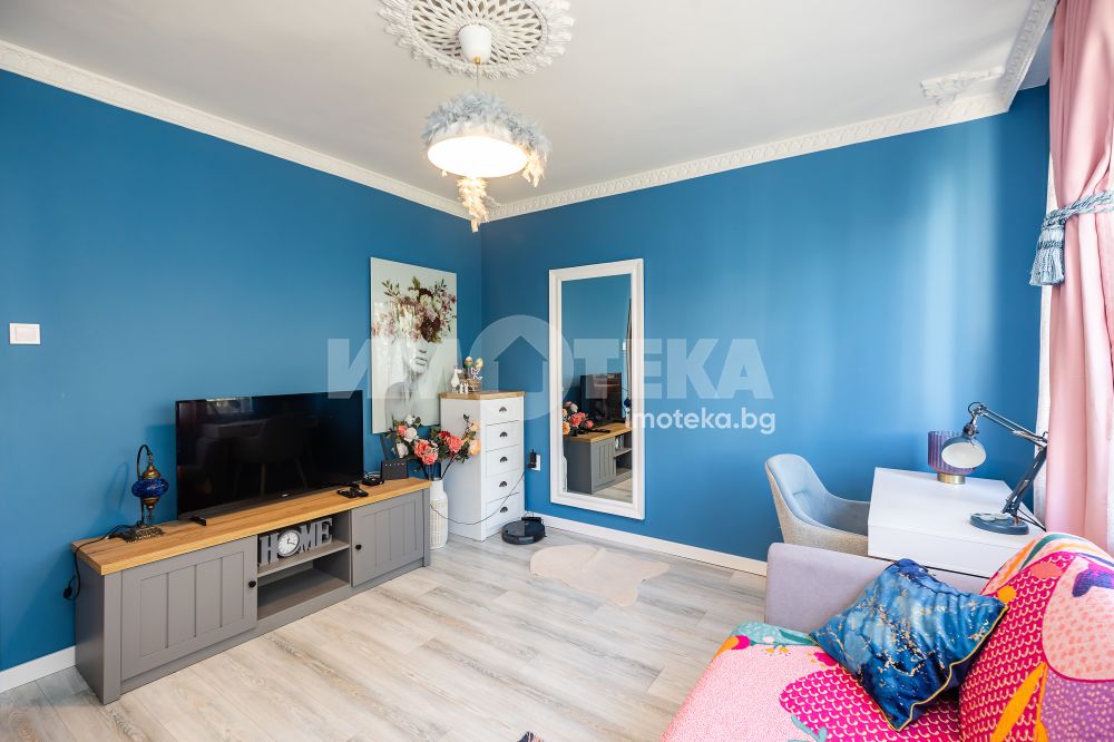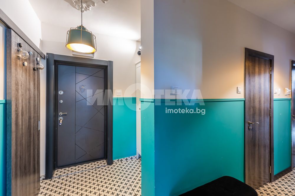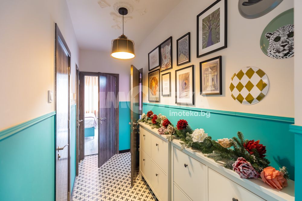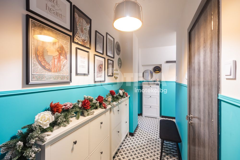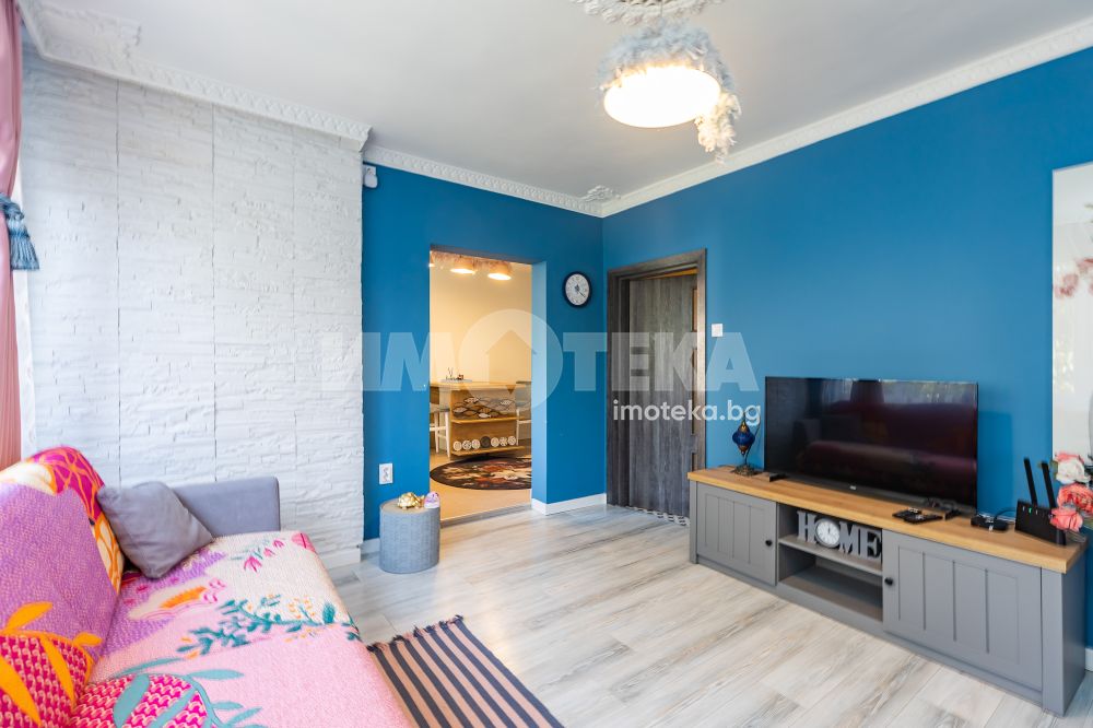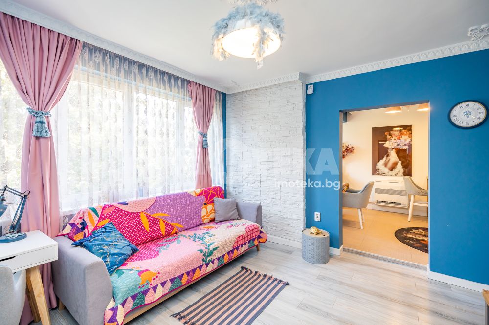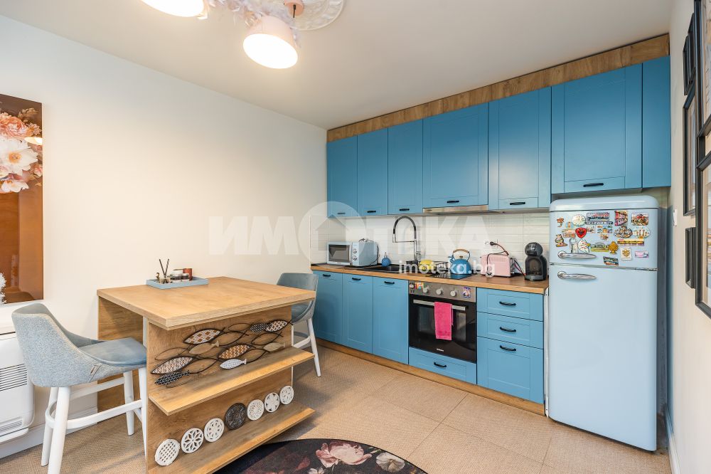 Представяме Ви четиристаен апартамент след основен ремонт, превърнат в уютен и стилен дом с внимание към всеки детайл. Жилището се предлага напълно обзаведено с качествени мебели и техника – готово за нанасяне без необходимост от каквито и да е допълнителни инвестиции.Разпределението е функционално и удобно: входно антре с отделено перално помещение, просторен хол, отделна кухня с трапезария, две спални с излаз към обща тераса, баня и отделна тоалетна.