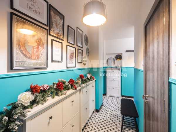 Апартаментът се намира в тухлена сграда, характерна със здравото и качествено строителство от този период. Общите части са в добро състояние. Към жилището има и прилежащо мазе с площ от 9 кв.м, осигуряващо удобно място за съхранение.