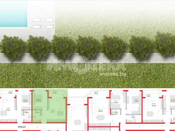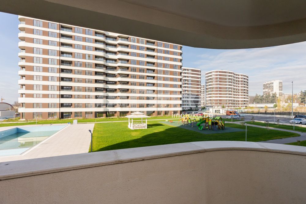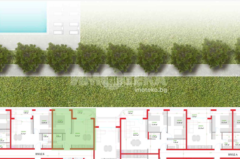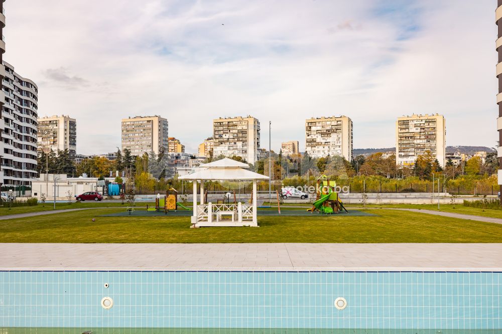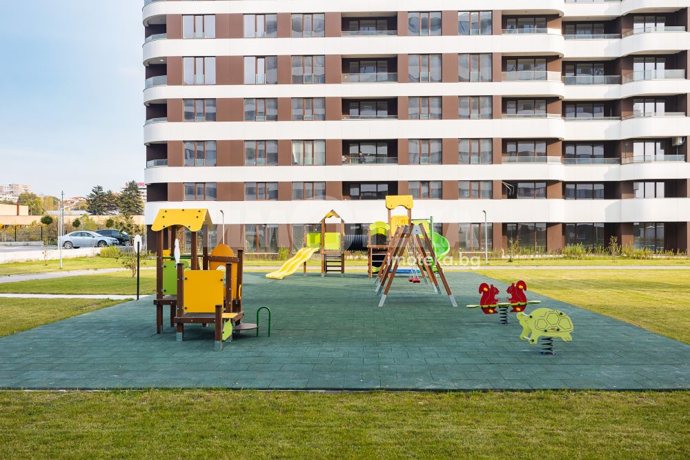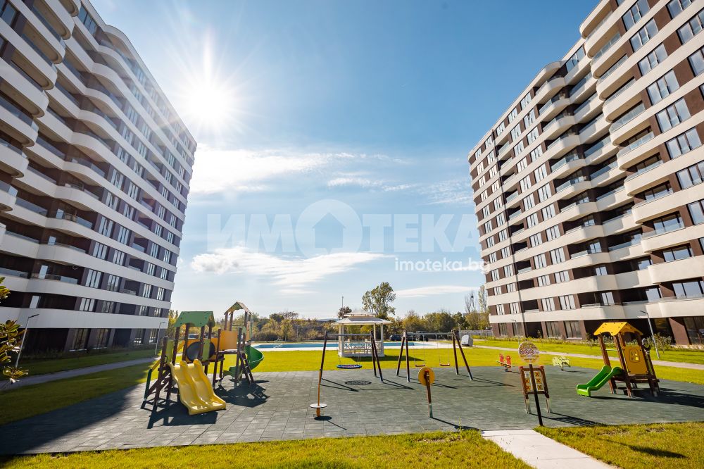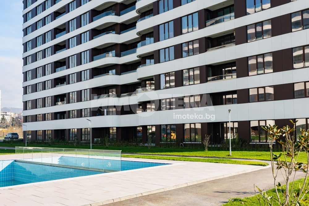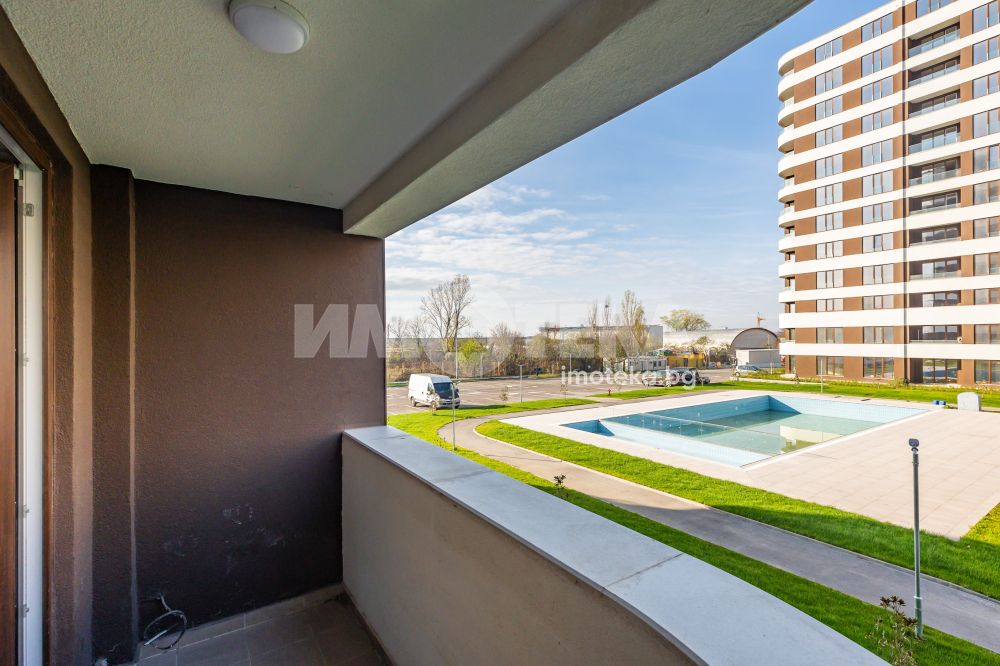 Нов двустаен апартамент, разположен в сграда с модерна визия, добре завършени общи части. Състои се от дневна с кухненска част, спалня, входно антре, баня-тоалет и тераса. Югозападно изложение с гледка към басейна. Към апартамента има избено помещение. Възможност за покупка на паркомясто.