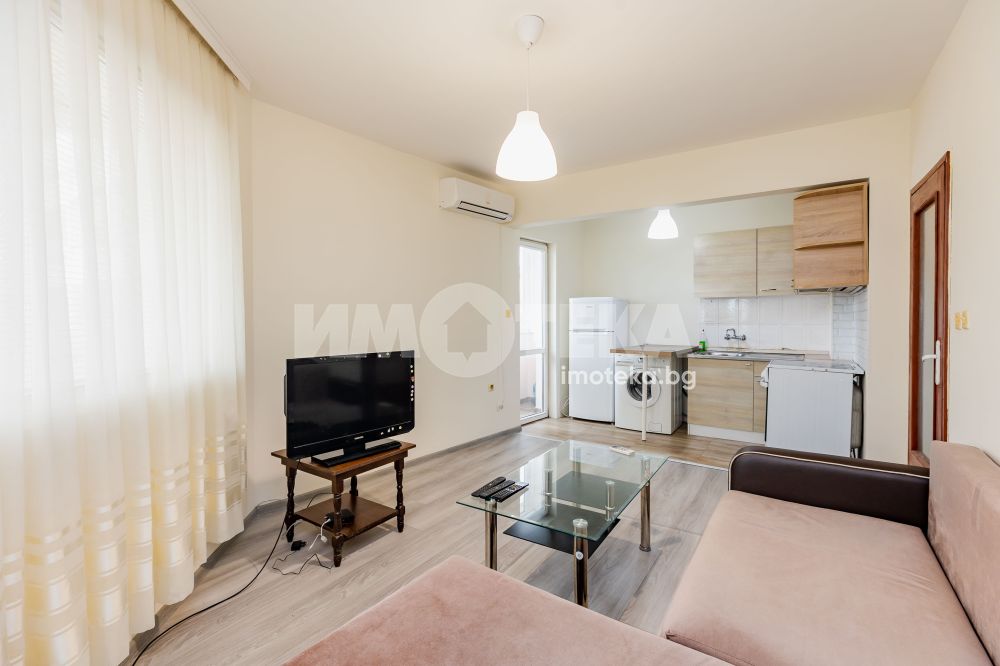 Предлагаме под наем двустаен апартамент след освежаване в квартал Трошево. Състои се от просторен хол с кухня, от който се излиза на два балкона, спалня с двойно легло, коридор, баня с тоалет. Отоплението и охлаждането са решени с два климатика. Отдава се дългосрочно.
