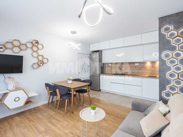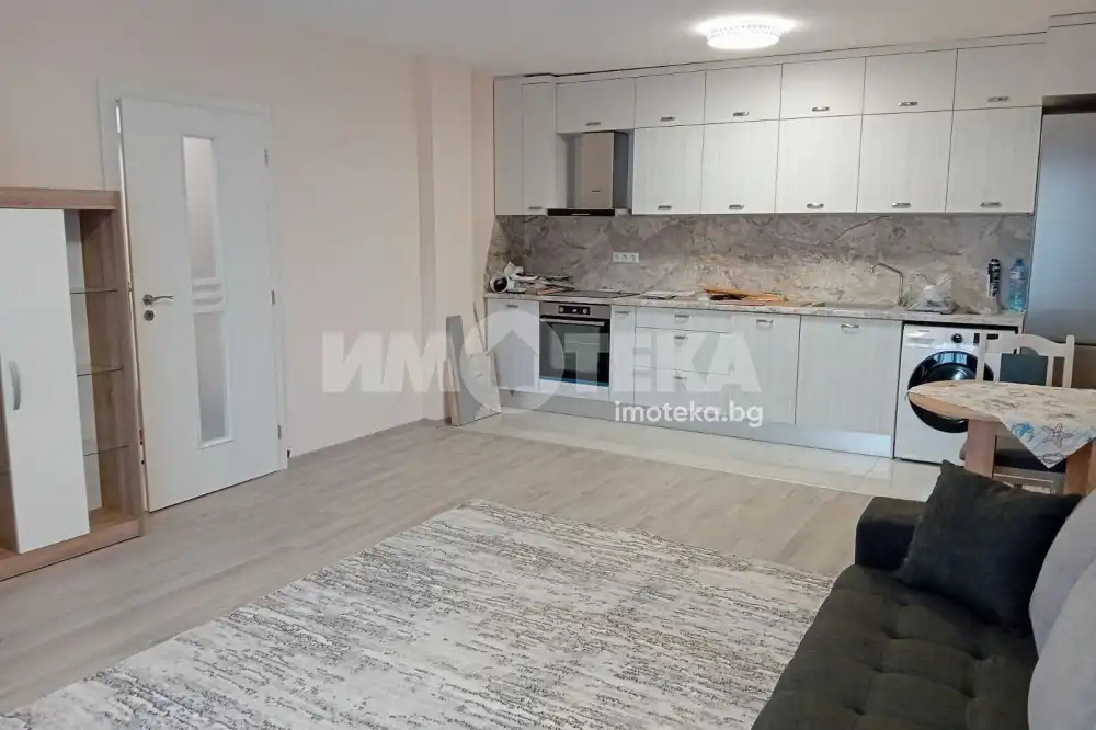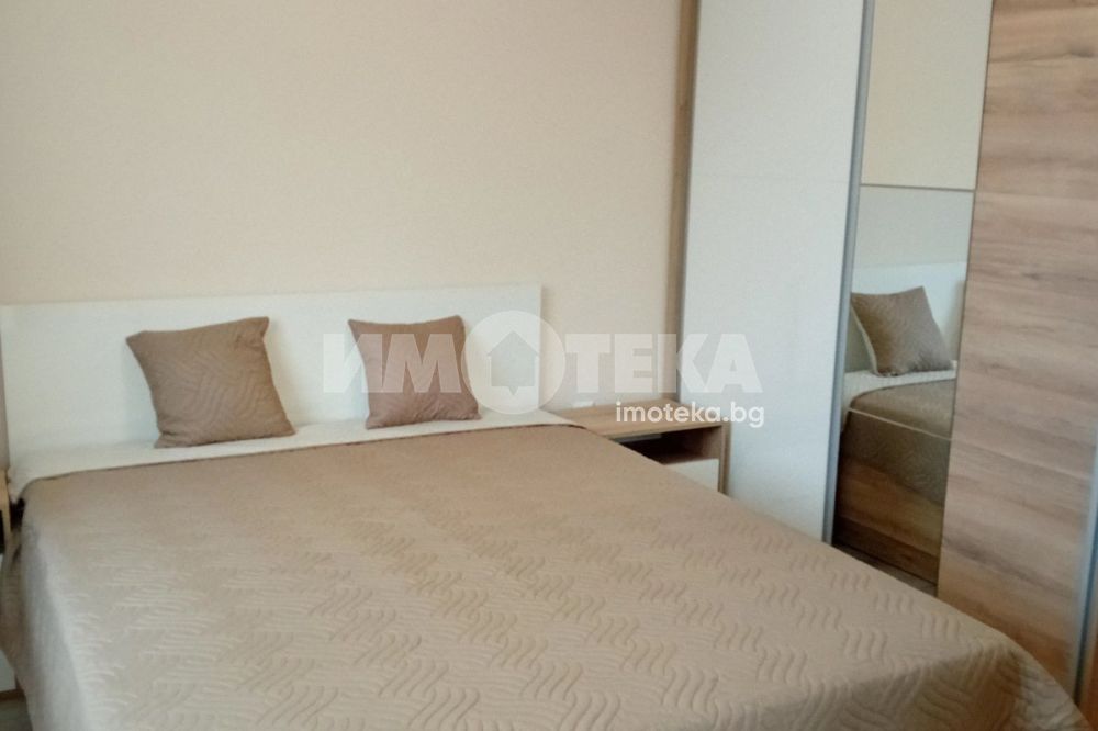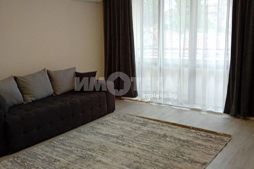 Двустаен апартамент в нова тухлена сграда в жк. Трошево. Жилището се намира на втори етаж със следното разпределение: дневна -29кв.м , оборудвана с разтегателен диван, секция, маса за хранене, кухня- оборудвана : хладилник, съдомиялна, перална, фурна с керамични котлони. Спалня-13кв.м,оборудвана - гардероб, спалня, скрин, два климатика в дневната и спалнята, тераса с излаз от двете стаи. Мебелите и уредите са чисти нови, висок клас,неизползвани. Към имота има подземно паркомясто.