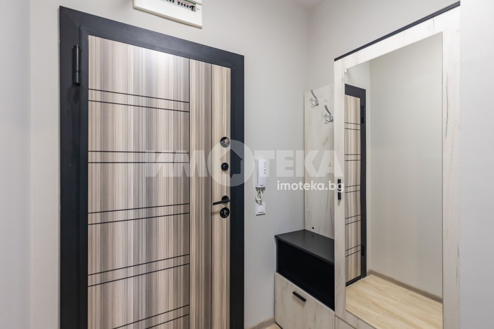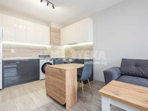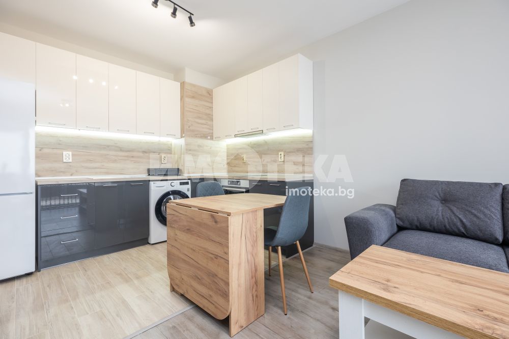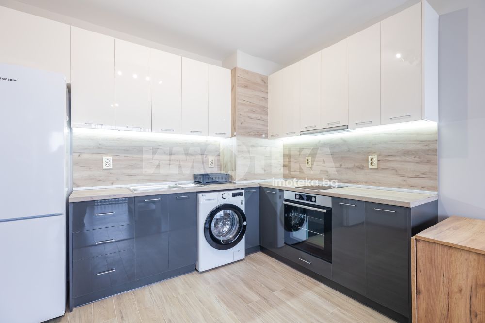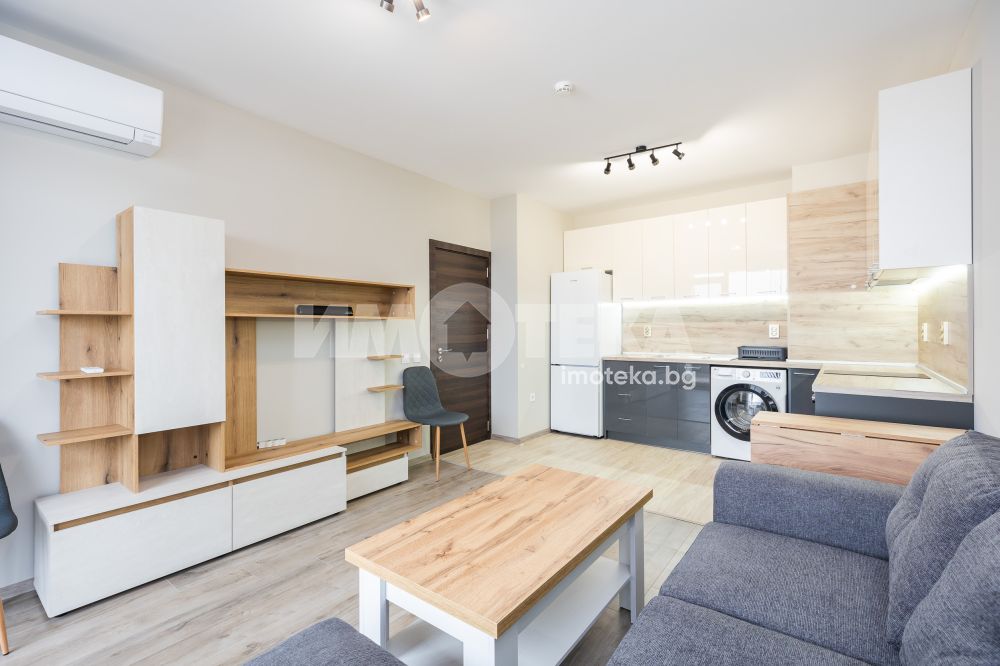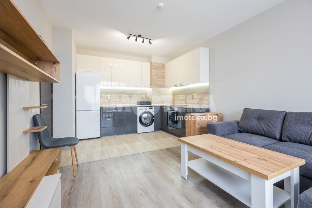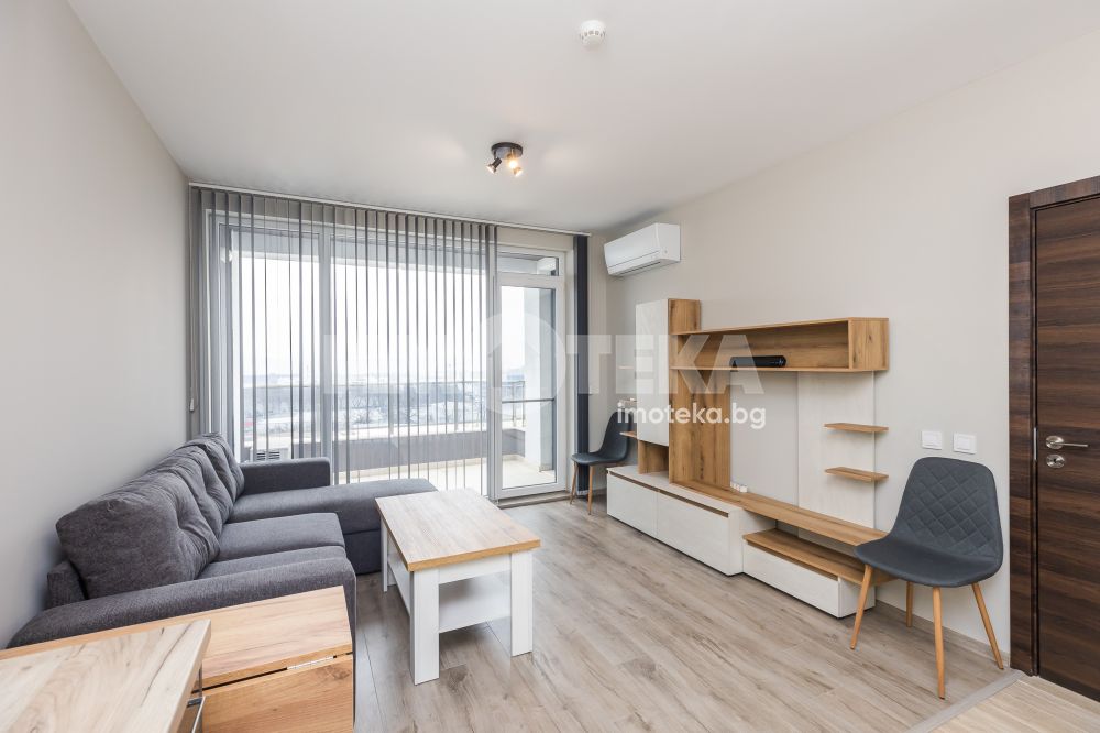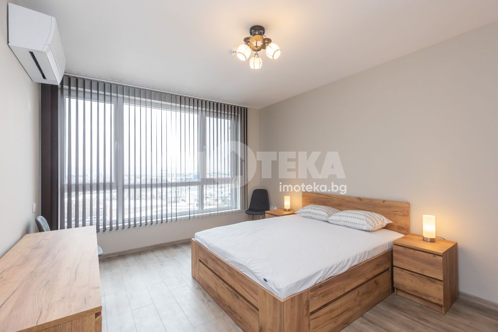 Предлагаме под наем нов двустаен апартамент в района на Делта планет МОЛ. Състои се от слънчева дневна с кухня, просторна спалня, баня с тоалет и душ кабина, коридор и голям балкон. Отоплението и охлаждането са решени с два климатика висок клас. На разположение на наемателите има пералня комбинирана със сушилня. Трапезната маса се разтяга, а също и диванът. Под матрака в спалнята има място за съхранение на вещи. Отдава се дългосрочно. Има възможност за наемане на паркомясто в подземен гараж срещу 150 лв.