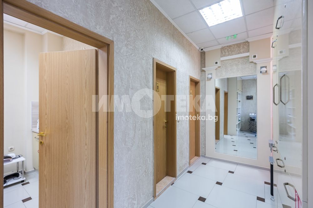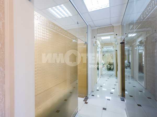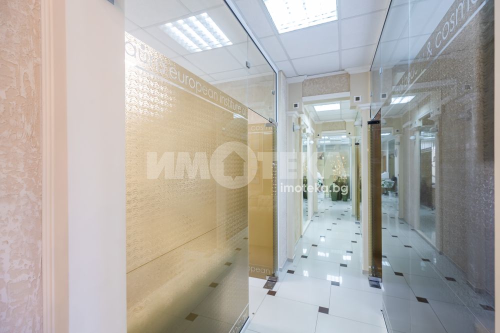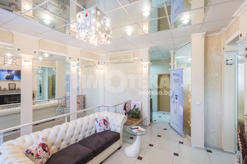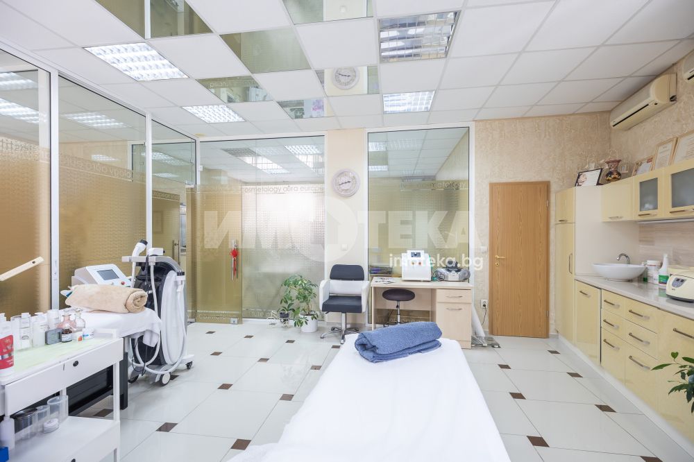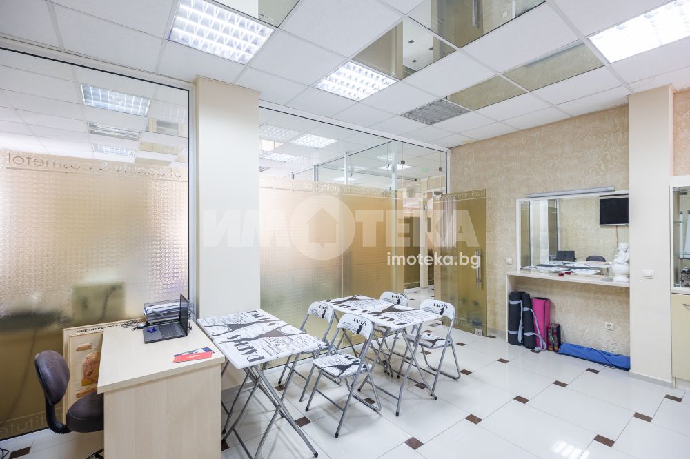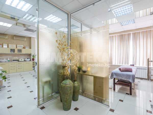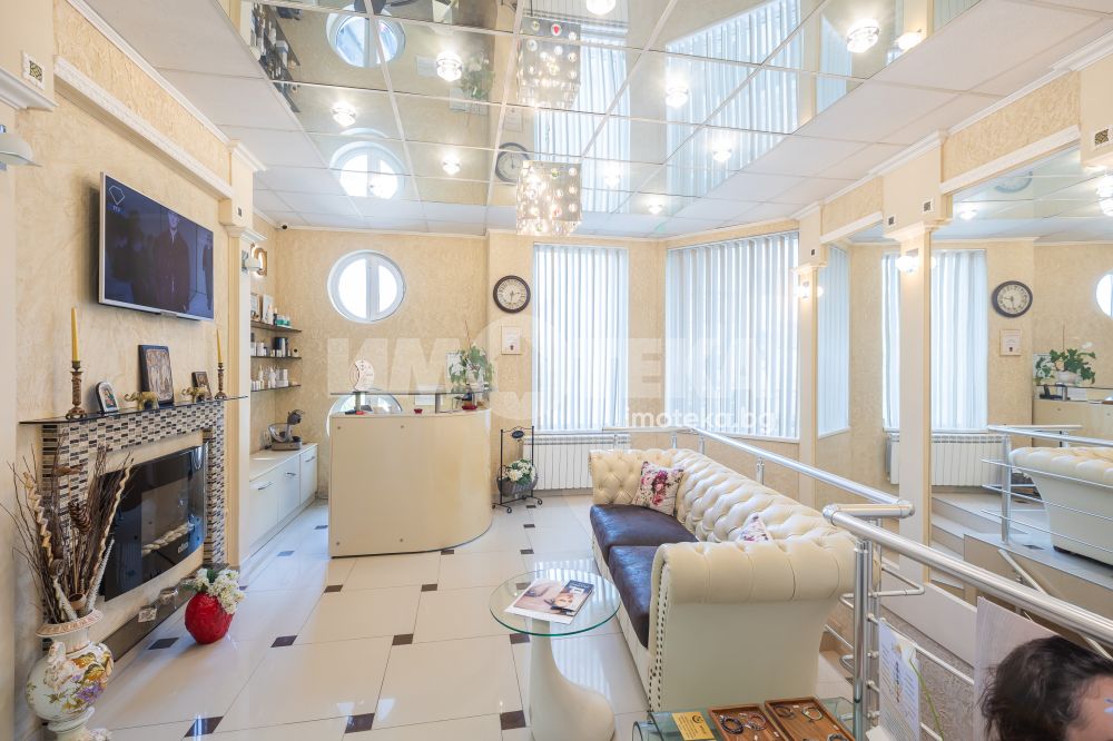 Адрес има удоволствието да ви предложи готов, разработен бизнес с хиляди, редовни клиенти. Център с традиции, отговорност и уважение към своите посетители - стотици хиляди доволни клиенти.Предлагаме голямо, слънчево мултифункционално офис пространство с изцяло южно изложение на перфектна локация. Самостоятелен вход ни отвежда към просторен, светъл етаж на който са оформени 10 самостоятелни помещения, 3 санитарни помещения и 1 складово помещение. Целия самостоятелен етаж е изграден с материали много висок клас. Височина на таваните от 3.30 м дава много пространство и въздух. Скъпи стъклени интериорни врати допълнително допринасят за усещането за лукс и свобода. Интериорния дизайн е изпълнен в съответствие с новите модерни решения за повече светлина, простор и самостоятелност. В всяко помещение има климатик и отделно газов котел осигурява топлината на етажа.Изключителното местоположение до два основни булеварда, свободното паркиране в района , самостоятелен вход, напълно готови и оборудвани помещения прави обекта изключително атрактивен.