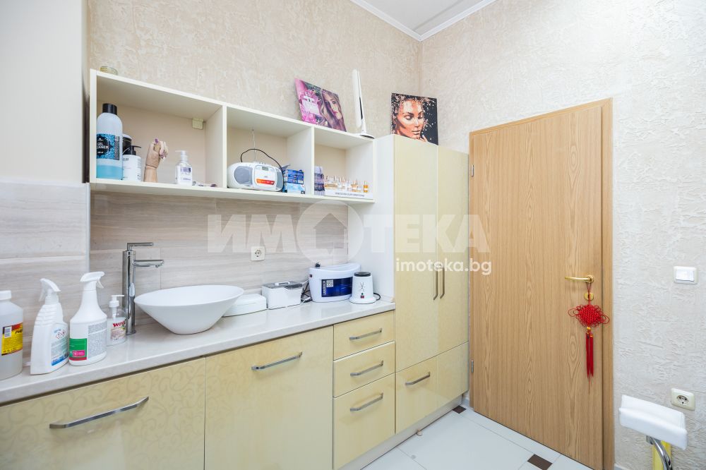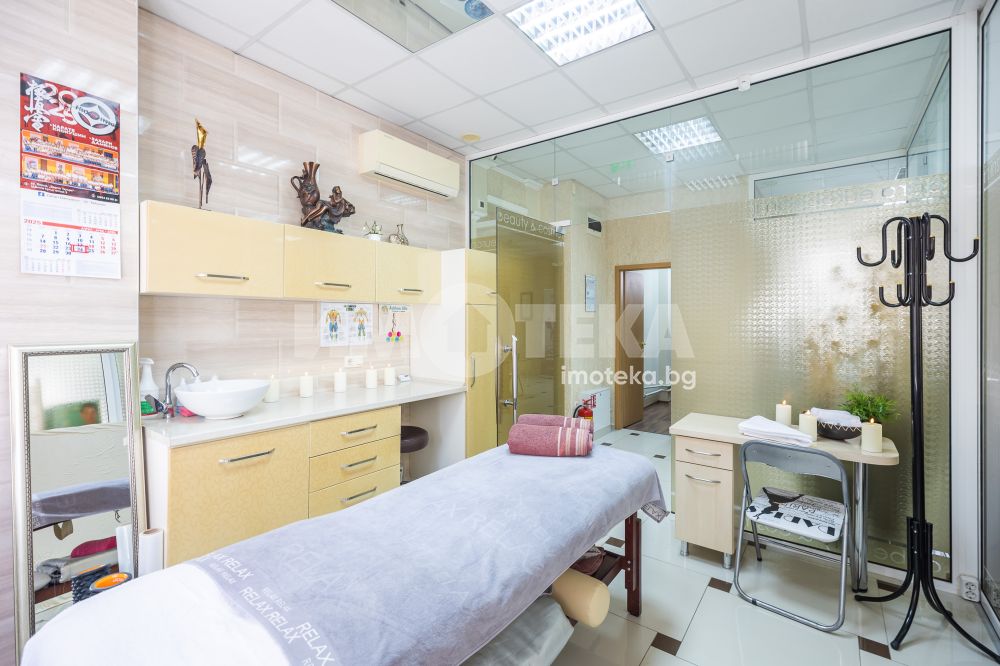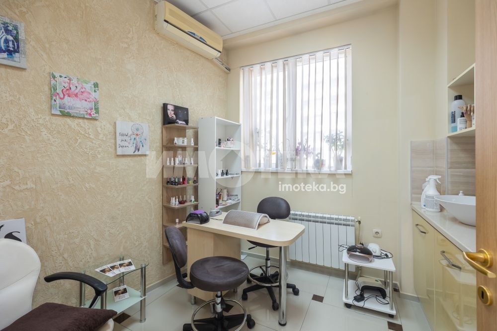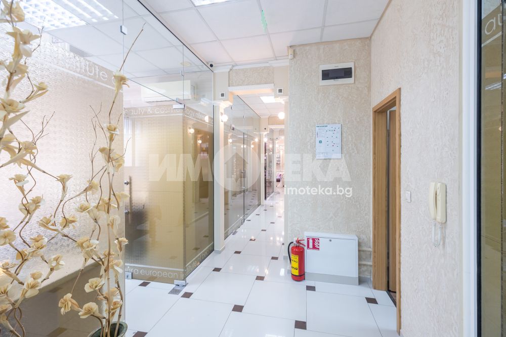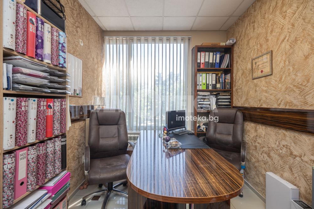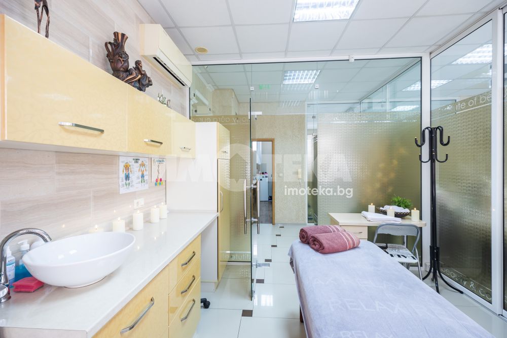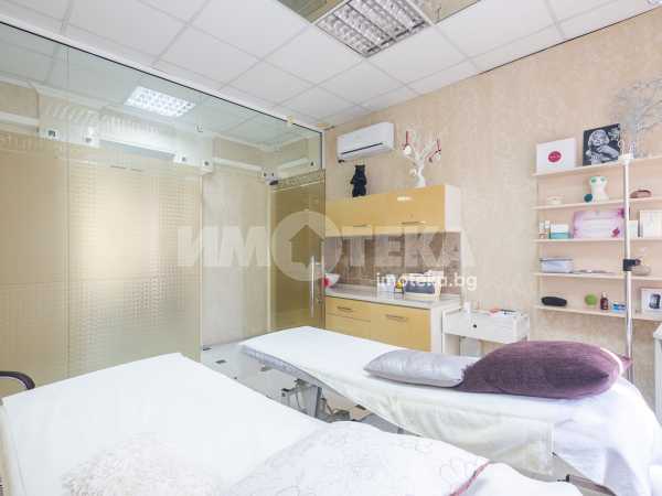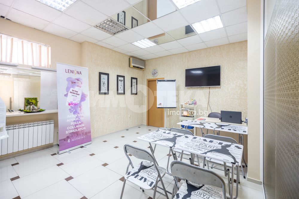 Адрес има удоволствието да ви предложи готов, разработен бизнес с хиляди, редовни клиенти. Център с традиции, отговорност и уважение към своите посетители - стотици хиляди доволни клиенти.Предлагаме голямо, слънчево мултифункционално офис пространство с изцяло южно изложение на перфектна локация. Самостоятелен вход ни отвежда към просторен, светъл етаж на който са оформени 10 самостоятелни помещения, 3 санитарни помещения и 1 складово помещение. Целия самостоятелен етаж е изграден с материали много висок клас. Височина на таваните от 3.30 м дава много пространство и въздух. Скъпи стъклени интериорни врати допълнително допринасят за усещането за лукс и свобода. Интериорния дизайн е изпълнен в съответствие с новите модерни решения за повече светлина, простор и самостоятелност. В всяко помещение има климатик и отделно газов котел осигурява топлината на етажа.Изключителното местоположение до два основни булеварда, свободното паркиране в района , самостоятелен вход, напълно готови и оборудвани помещения прави обекта изключително атрактивен.