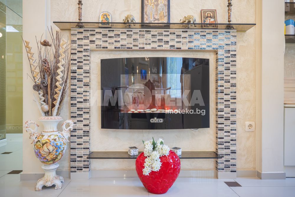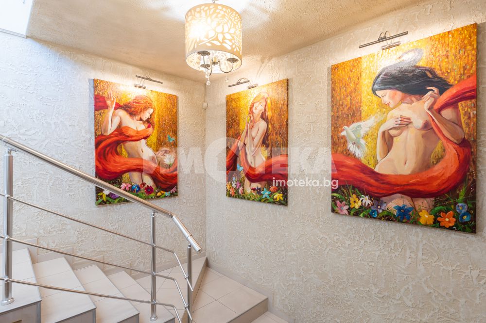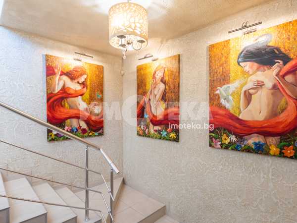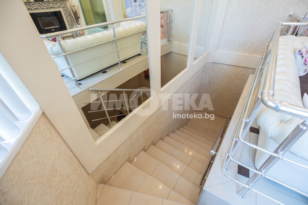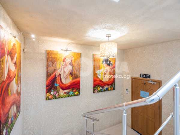 Сграда на 3 етажа въведена в експлоатация през 2006 год. Самостоятелен вход до втори етаж където е ситуирано много функционалното помещение. Газов котел осигурява отоплението на целия етаж. Климатици в всяко едно помещение. Изкючително луксозен дизайнерски проект, който е изпълнен с много висококачествени материали. Италианска мазилка, интериорна камина, всичко трайно закрепено в помещенията остава в тази цена.