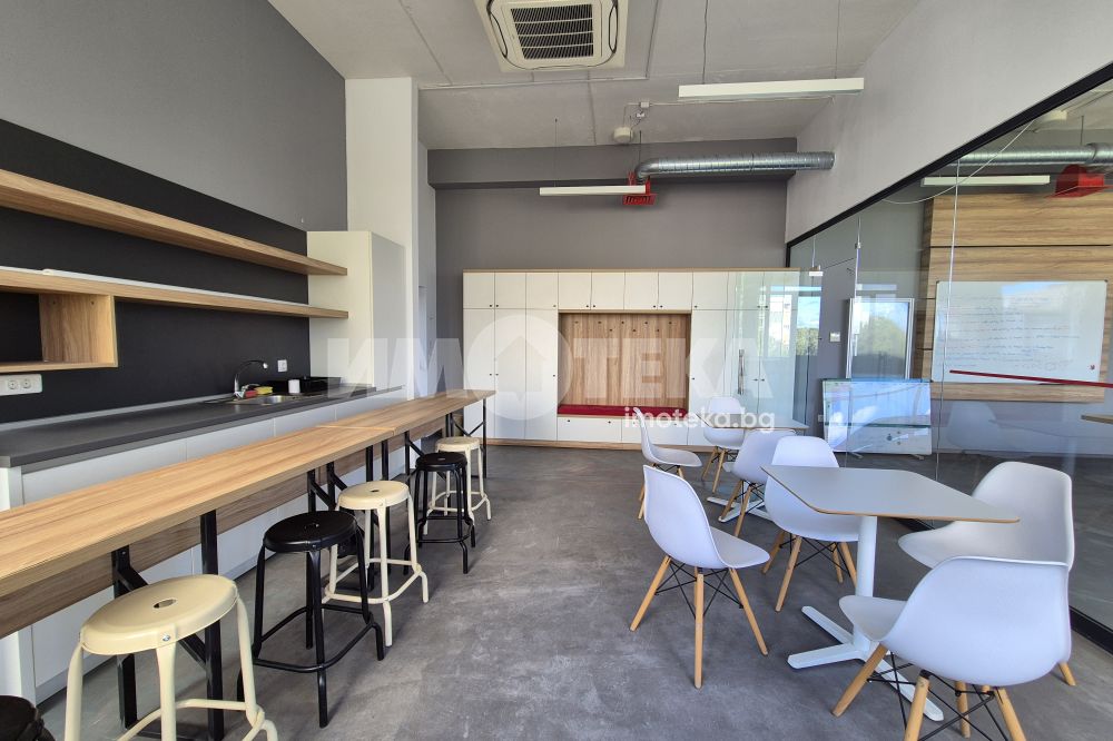 Предлагаме Ви полуобзаведен офис в кв. Трошево. На площ от 185 кв.м. са разпределени три преходни помещения, като първото е обзаведено като приемна с кухненска част, второ голямо помещение обзаведено с бюра, трето помещение - необзаведено. Отопление и охлаждане - климатици. Окабеляване в пода. Подходящо за кол център, всякакъв вид офис дейност и т.н.