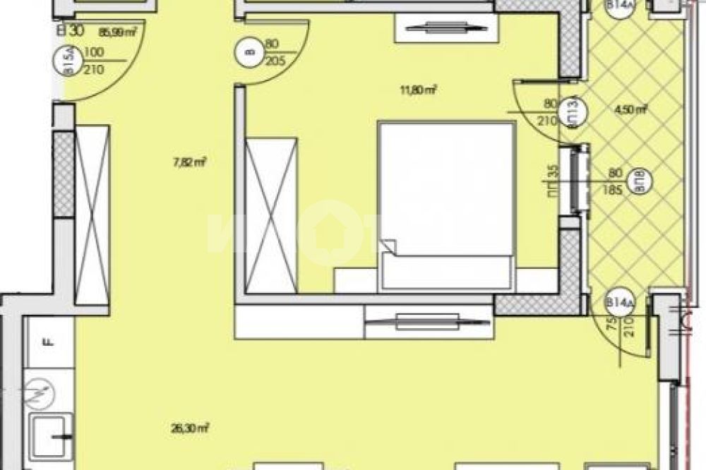 Жилището е на 6 от 7 етаж, с изложение изток/юг.