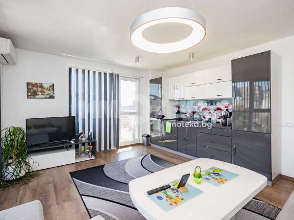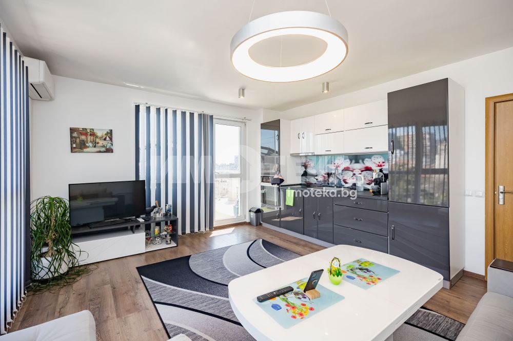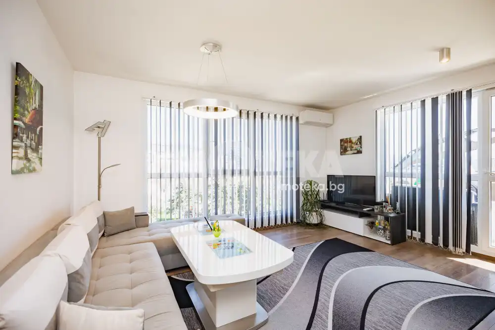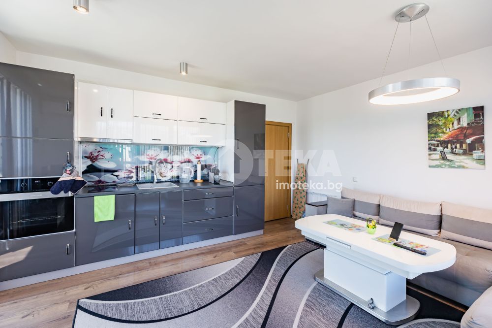 Апартаментът разполага с уютна дневна, модерна кухня, комфортни спални, от които едната с дрешник, баня с тоалет и килер.