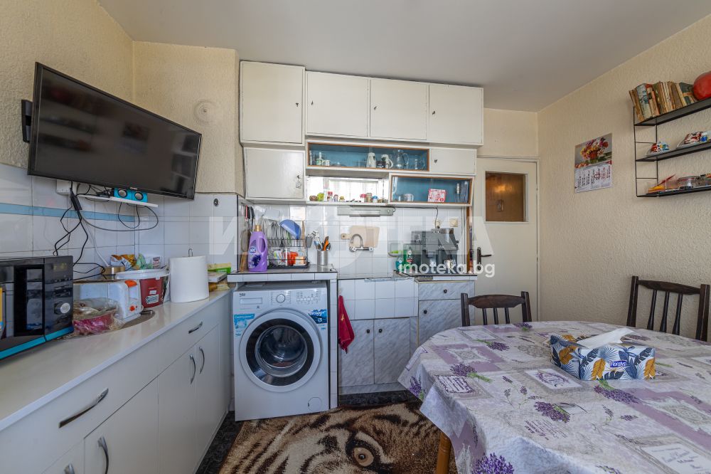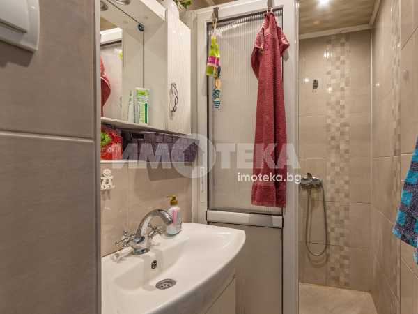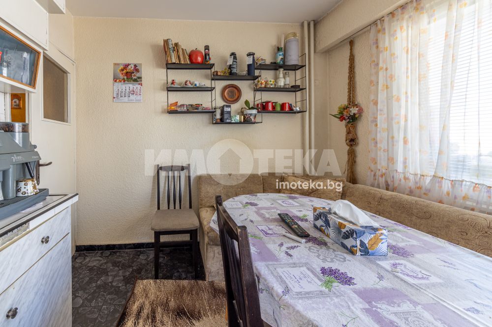 Имотека продава ексклузивно тристаен апартамент с ЧЖП 81,3 м2. Състои се от коридор, дневна, две спални, кухня, баня, отделно тоалетна, килер, обща тераса към дневната и едната спалня и остъклена тераса към кухнята. Апартаментът е много добре поддържан, на среден етаж, изцяло покрит, без външни стени. Сменена е дограмата на целия апартамент и е направен ремонт на банята. Продава се във вида от снимките. Изложение - север/юг