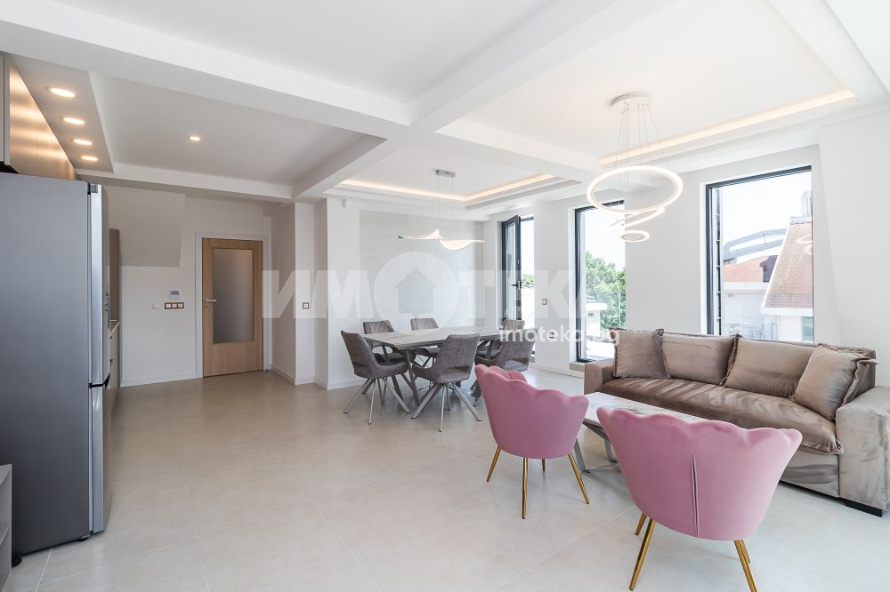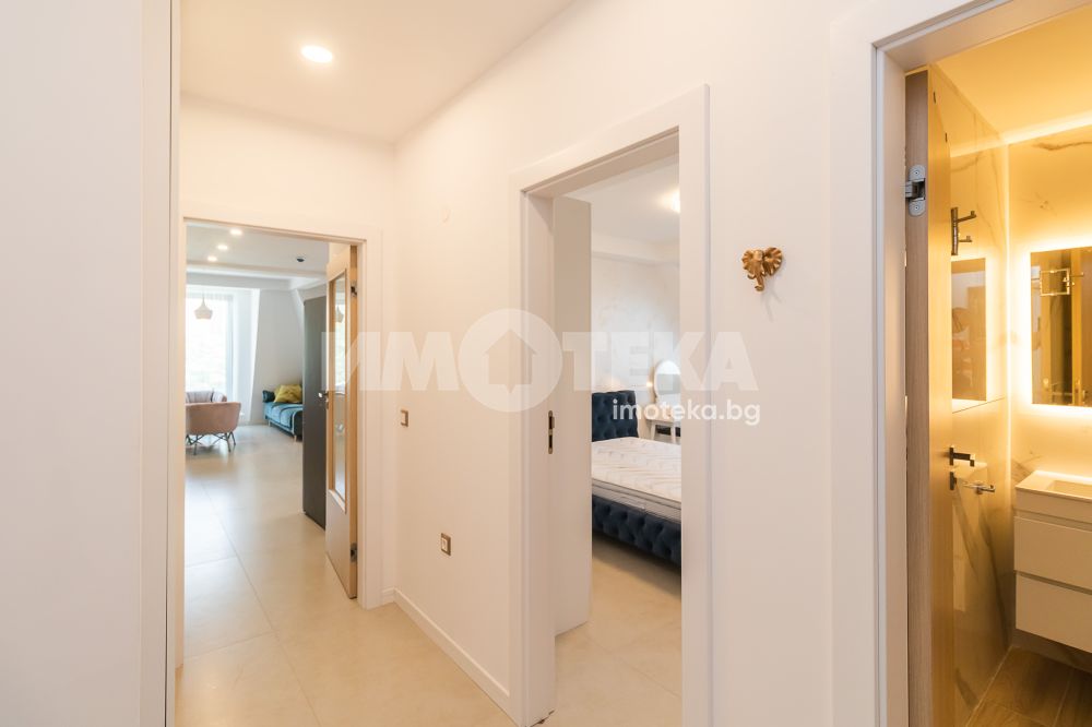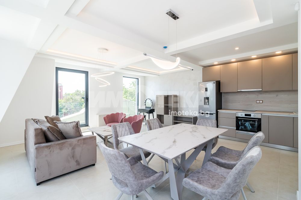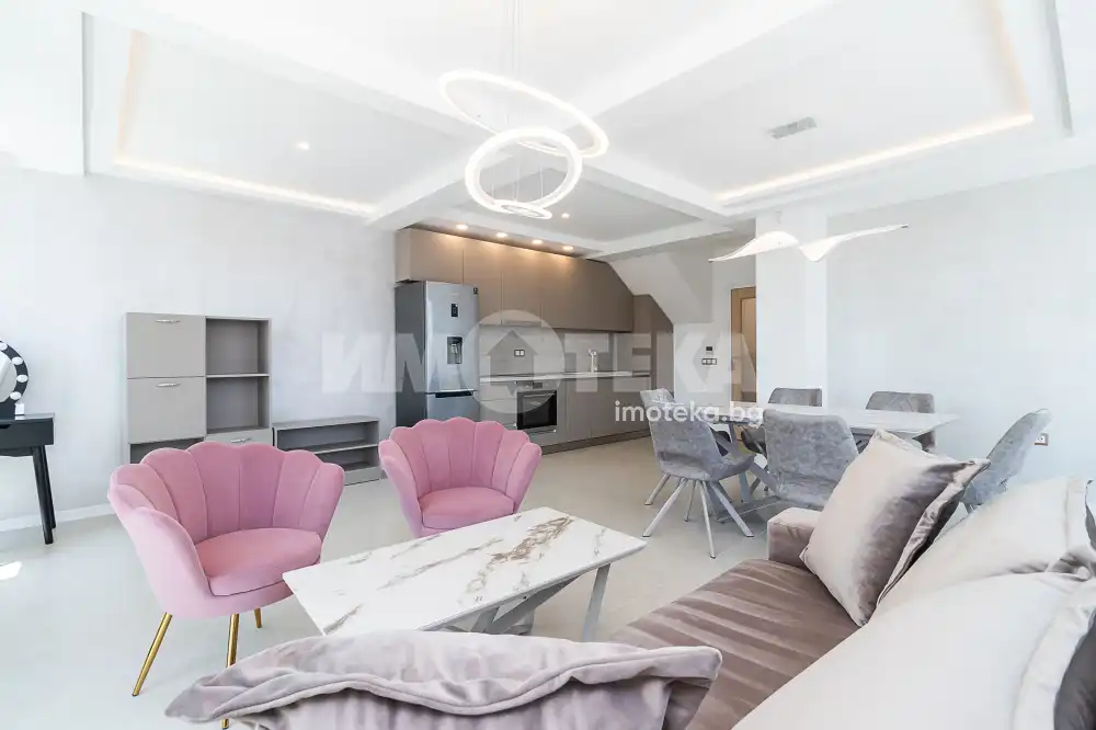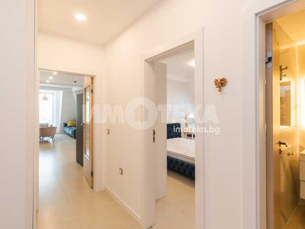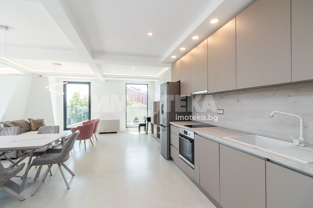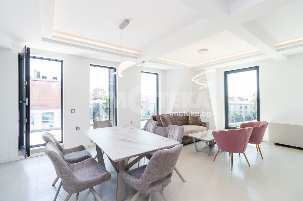 Впечатляващ, удобен и луксозен, много просторен и слъчнев двустаен, нов апартамент в идеалния център на града. Жилището се състои от коридор, просторна дневна с кухненски бокс и мека мебел, спалня с легло спалня, санитарен възел, тераси. Страхотна гледка към града. В обявената цена са включени всички разходи. Наемът е без ДДС. Свободен за нанасяне - от 15.10.2025, огледи са възможни и преди тази дата