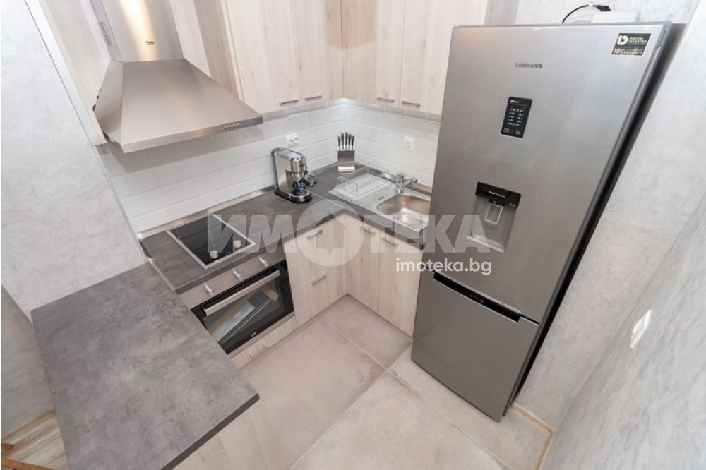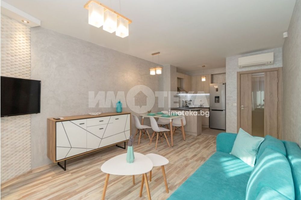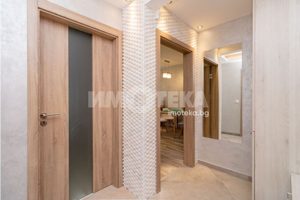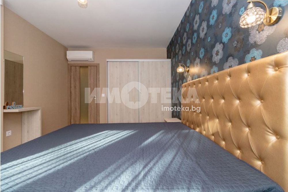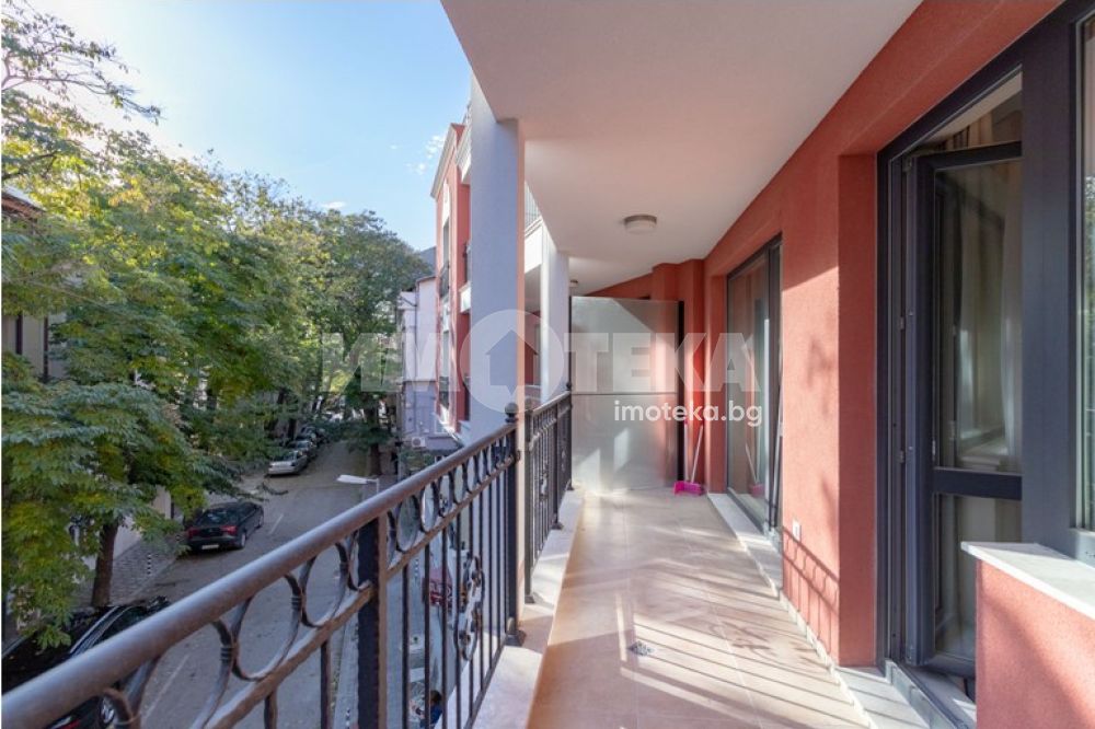 Двустаен, луксозно обзаведен апартамент, разположен в Идеален център. Просторен дневен тракт: стилно вградена кухня, маса за хранене, мека мебел, скрин. Спалня с легло спалня, гардероб, две нощни шкафчета, тоалетка с огледало. Два климатика- Дайкин. В коридора има вградени гардероб и тоалетка. Баня с тоалет. Голяма тераса пред двете стаи. В наемната цена е включено паркомясто в подземен паркинг.