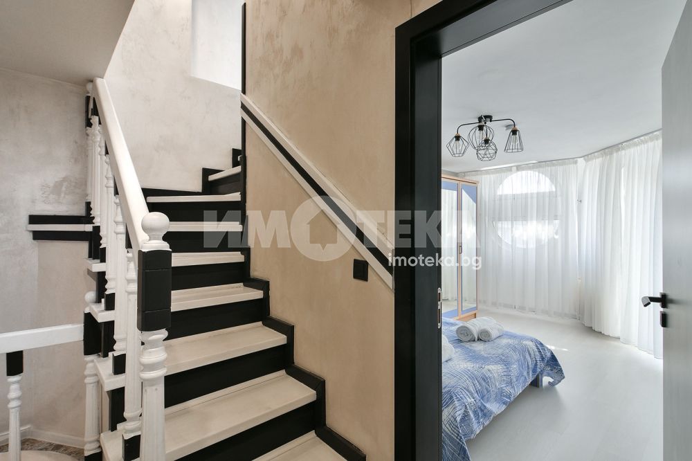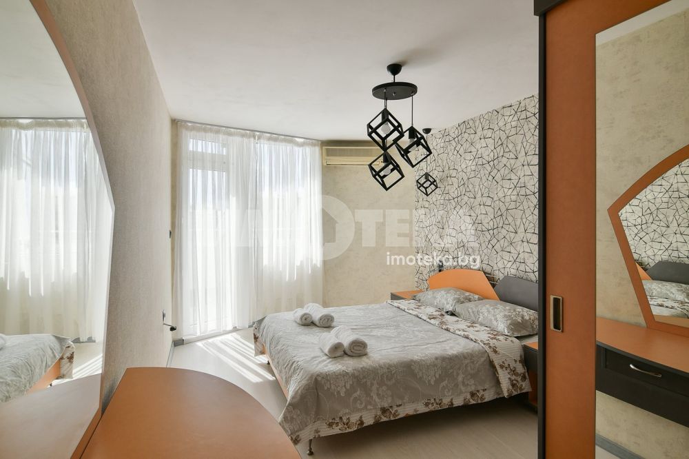 Предлагаме Ви напълно обзаведен тризонет в центъра на Варна. Апартамента е на 3 етажа. На първия етаж са разположени дневна с кухненска част, килер, баня и тоалет,спалня,две тераси; На втория етаж две спални с баня и тоалет,тераса. На третия етаж : спалня,тераса.