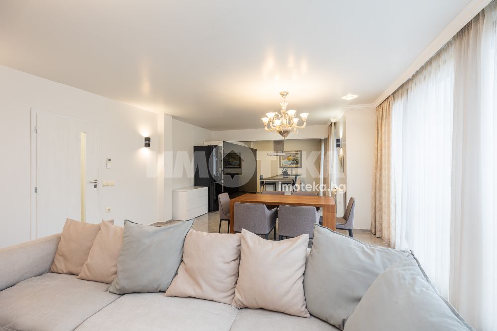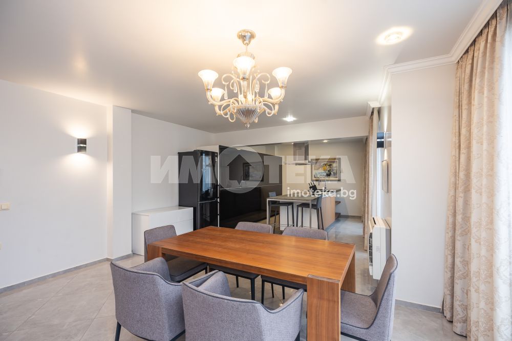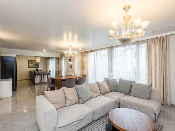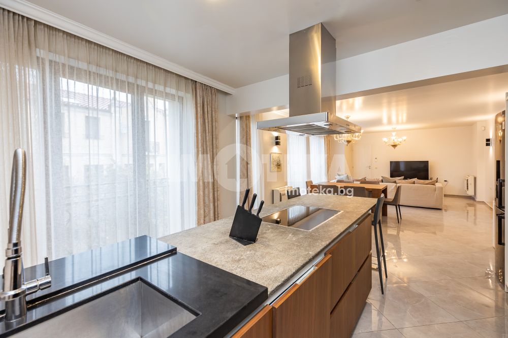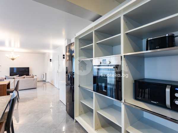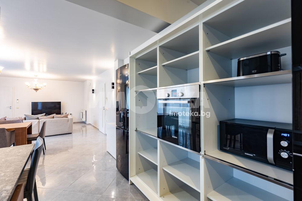 Стилен луксозен апартамент обзаведен с италиански мебели от Мартинели..Просторна всекидневна с кухненски остров,място за съхранение на посуда и консумативи.Три спални с три бани,с възможност третата да бъде обзаведена по предпочитание на клиента,като детска или офис.Гардеробно,перално с бойлер 250 л. вместимост.