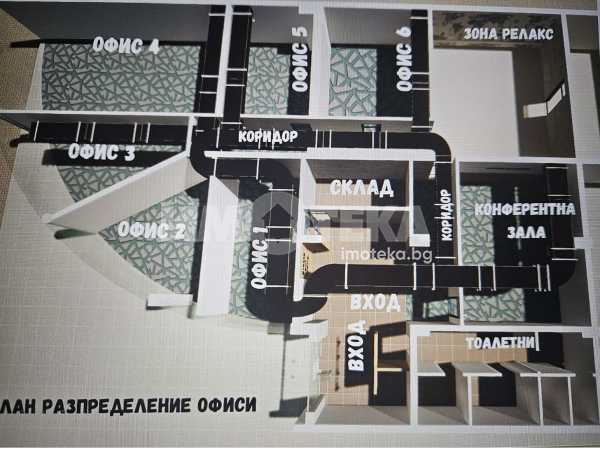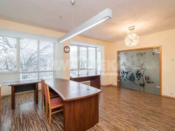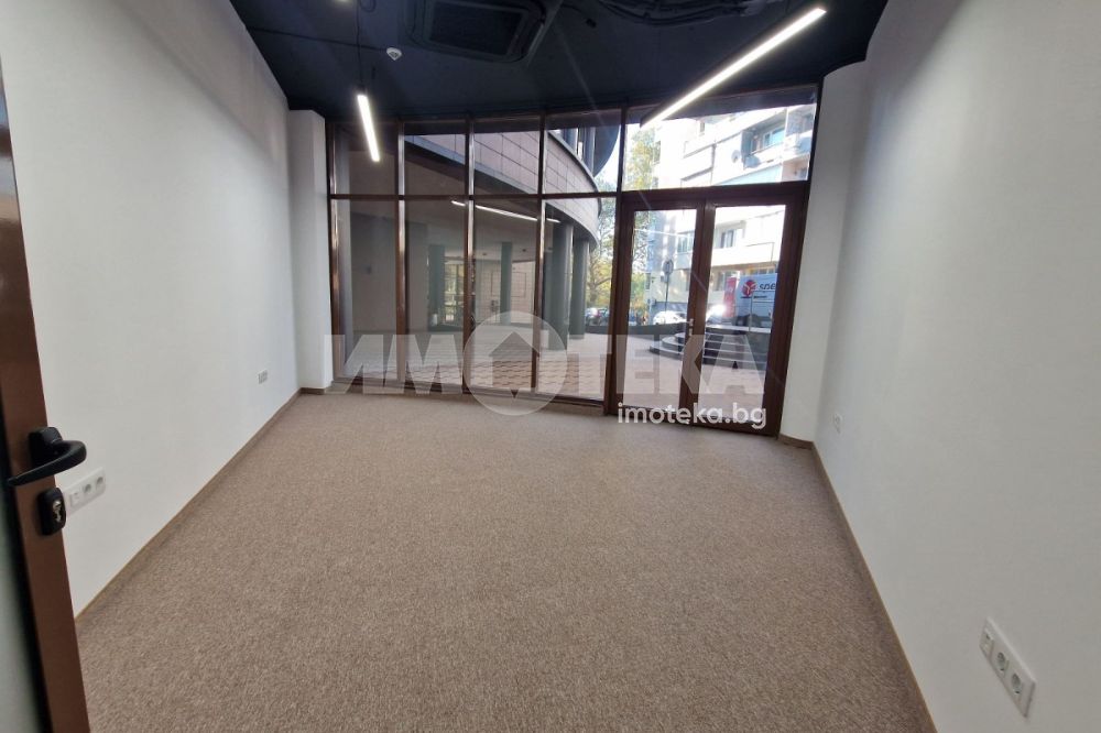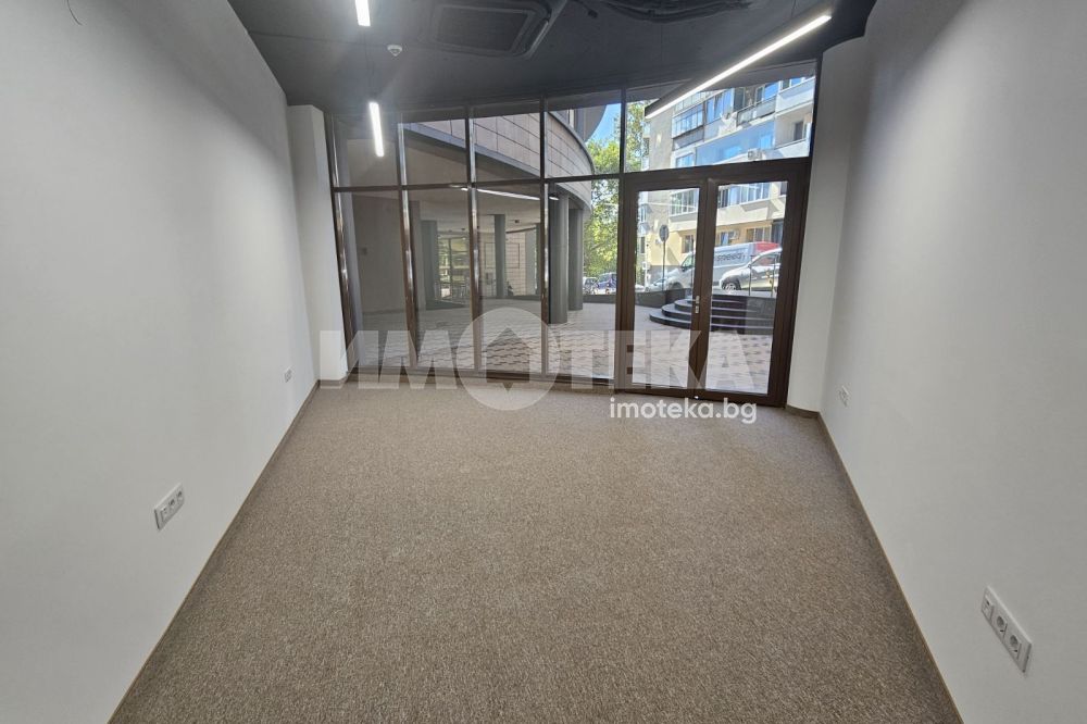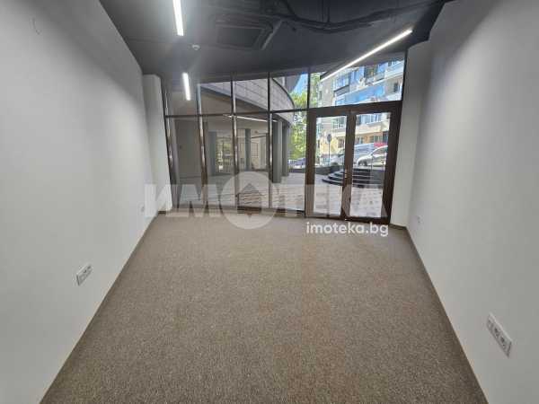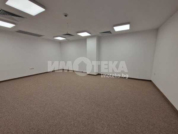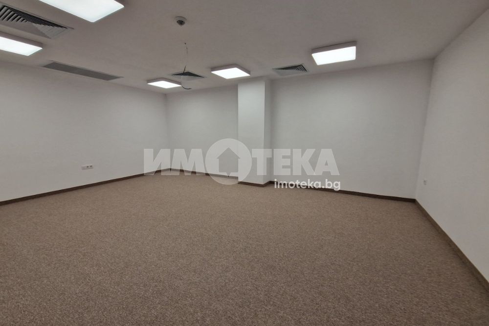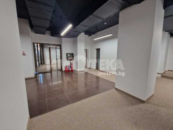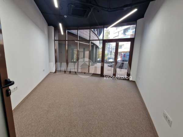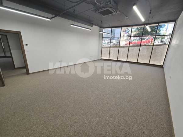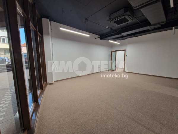 Помещение изцяло на партер в бизнес сграда, подходящо за офис. Чисто ново, неизползвано, в безупречно състояние. Завършено в индустриален стил. Изградена климатична система на "Daikin", окабеляването е тип 5 Е. В момента рапределението е 6 работни помещения, конферентна зала, зона за релакс, сървърно, санитарни възли, рецепция, гардеробна. Положената настилка в помещенията е килим. Обявената наемна цена е без ДДС. Допълнително се заплаща по 2Е/кв без ДДС на месец такса обслужване, която включва застраховка на имота, такса смет, поддръжка на климатична и пожораизвестителна система, актуализация за пожарогасителите, охрана, почистване фасада и предофисно пространство. Възможност за наемане на две паркоместа.