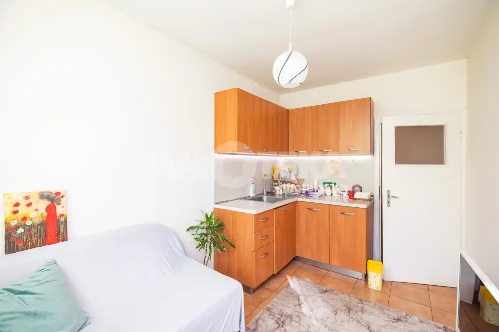 Двустаен апартамент със следното разпределение-входно антре,кухня с трапезария,спалня,перално помещение,баня и тоалет.