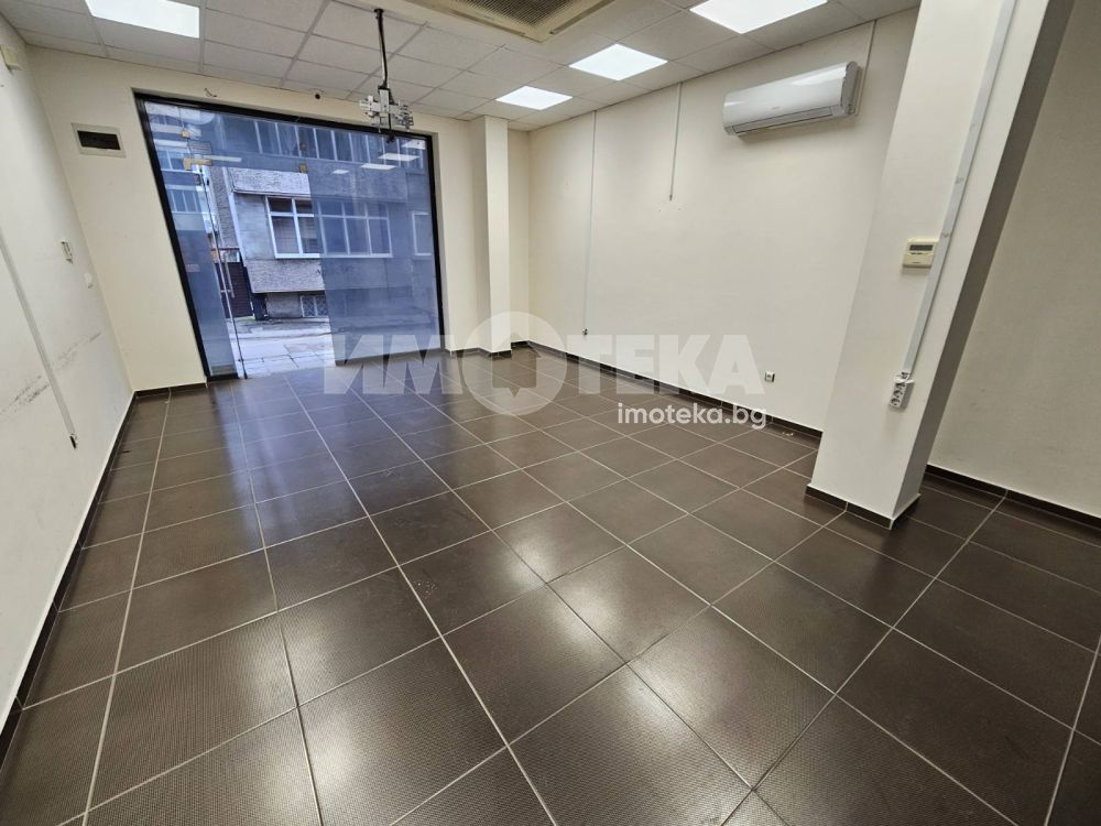 Партерно помещение със статут на магазин в непосредствена близост до Ценрална поща. Състои се от търговска зала (на гранитогрес, окачен таван с LED осветление, климатик), второ помещение отделено с плъзгаща врата, битовка, санитарен възел. Достъп от помещението до малък вътрешен двор. Обявената наемна цена е без включено ДДС.
