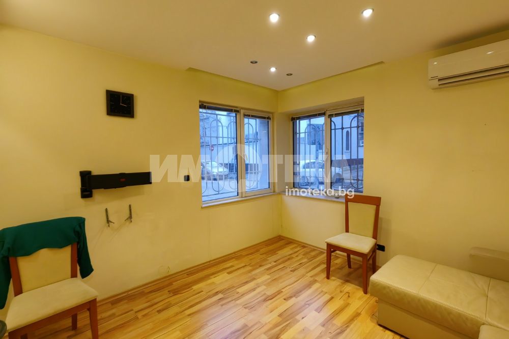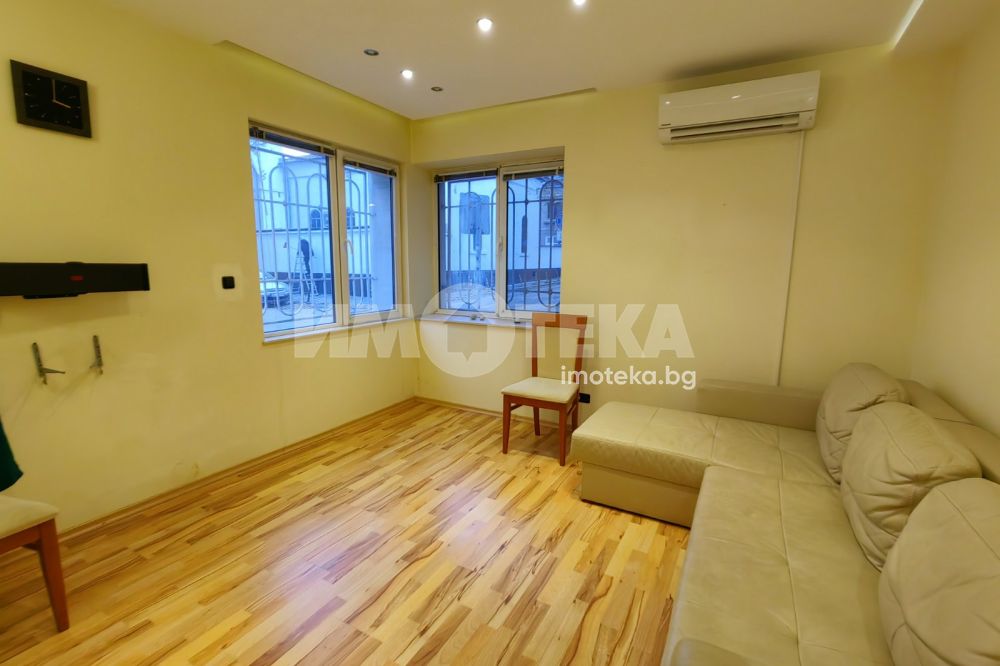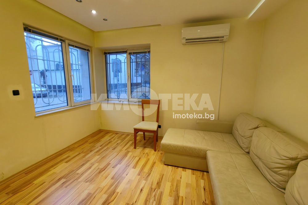 Просторен имот, зад Централна Поща, в близост до Ботева градинка. Жилището е етаж от къща със самостоятелен вход. Разполага с отделна кухня, хол, две спални, остъклена веранда. Жилището е обзаведено изцяло (фурна ще се закупи за кухнята), с изключение на едната спалня. Отоплява се с 3 климатика.