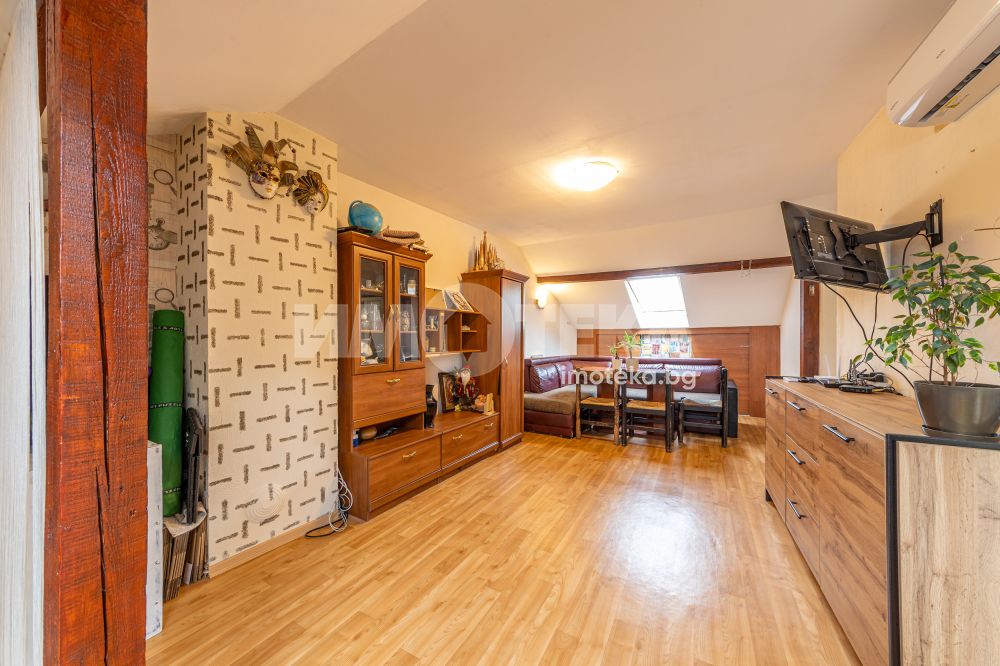 Жилището е с площ от 129 кв.м, разположено на 4-ти етаж, в тухлена сграда без асансьор и е със следното разпределение:
