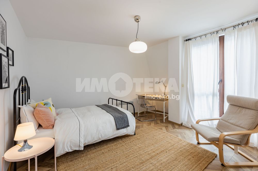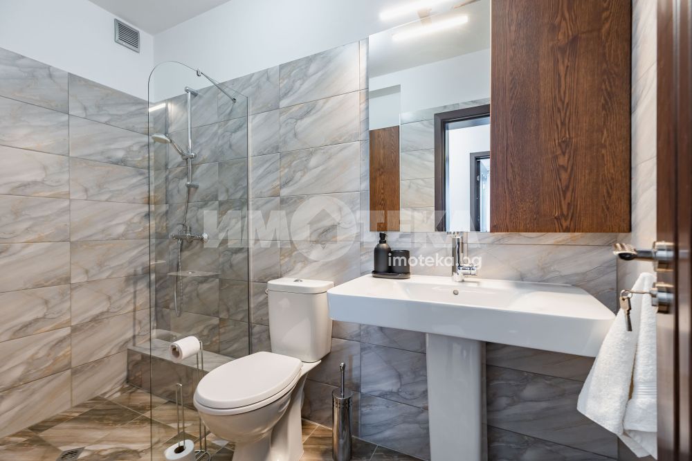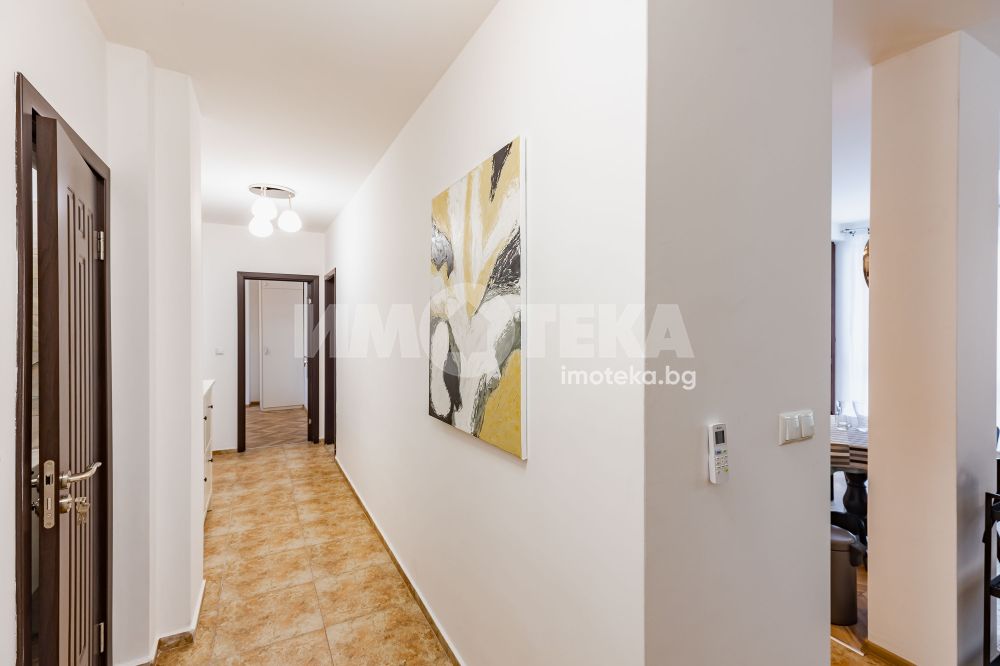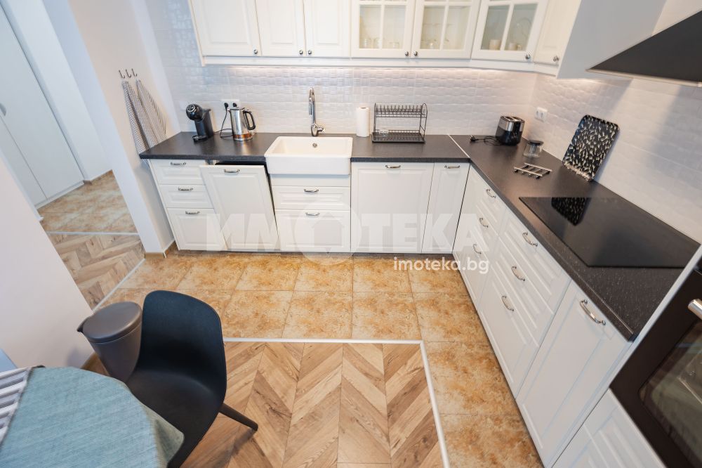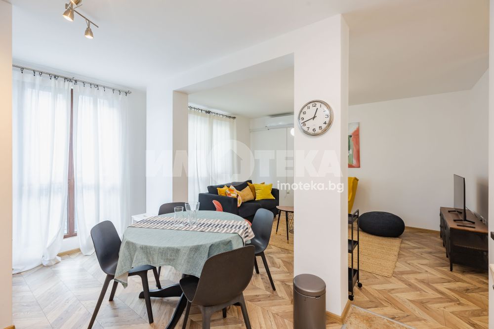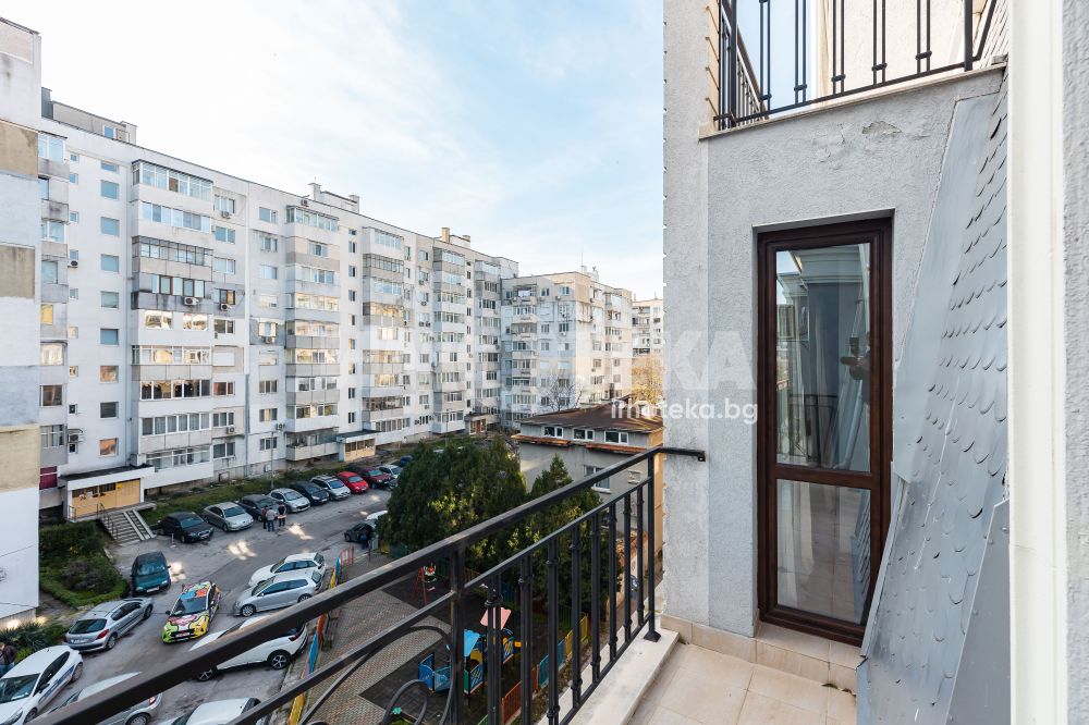 Тристаен, стилно обзаведен апартамент в Цветен квартал. Жилището се състои от съвременно обзаведена дневна с кухненска част (оборудвана с бяла техника; посуда) и трапезна част, две спални - обзаведени. Две тераси, баня с тоалет, втори тоалет.