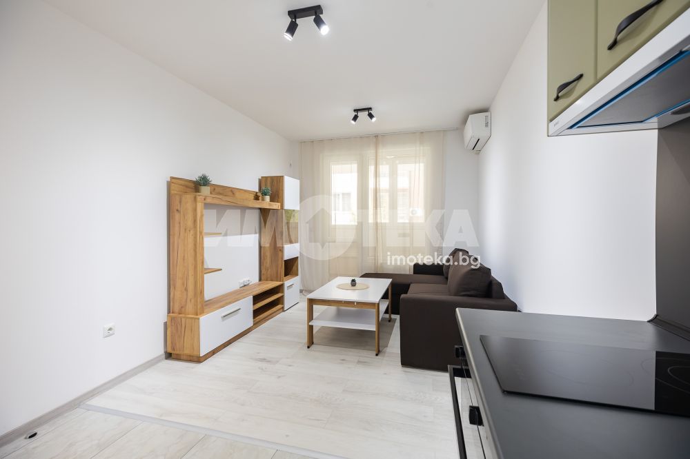 Двустаен апартамент под наем в кв. Възраждане. Състои се от просторна всекидневна, голяма спалня, баня с тоалет, голям килер, голям коридор и обща тераса към двете стаи. Апартаментът е функционален, просторен, модерен, след основен ремонт. Ново обзавеждане и нови енергоспестяващи електроуреди. В апартамента не е живяно. Към цената е включен подземен гараж с площ 19 кв.м., отлична маневрена площ в подземното пространство на сградата.