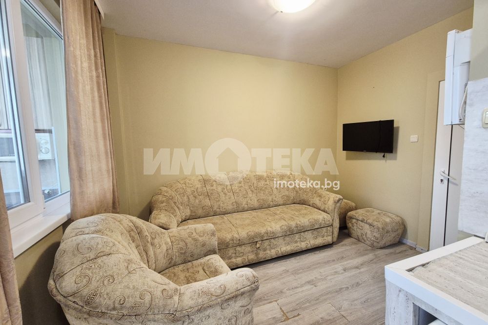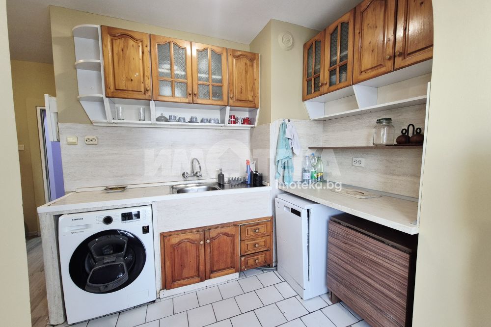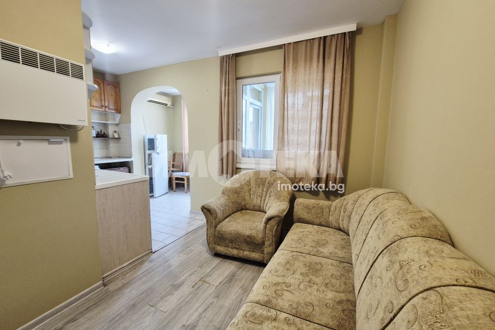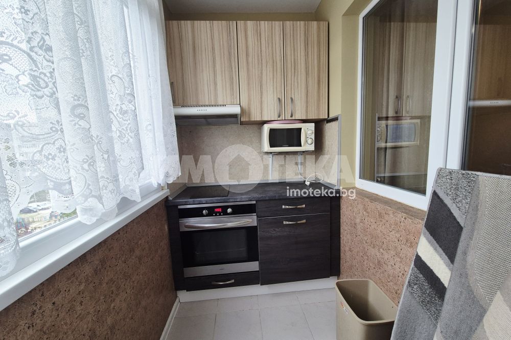 Предлагаме Ви обзаведен апартамент, който се състои от: просторна кухня с бяла техника, мека мебел, климатик, остъклена тераса с готварска печка. Слънчева спалня с легло, голям гардероб, диван, климатик, открита тераса. Баня. Тоалет. Голям коридор с гардероб и портманто.
