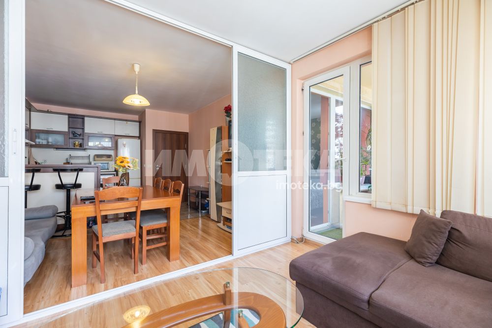 АДРЕС отдава под наем обзаведен двустаен апартамент с площ от 87 кв.м в жк."Възраждане 1". Състои се от широк и удобен коридор, дневен тракт с площ 32 кв.м с обособена кухненска част и излаз на тераса тип лоджия, спалня, баня и тоалет в едно помещение и килер. Жилището е напълно обзаведено и оборудвано с всичко необходимо за едно домакинство и готовo за нанасяне. Голямата квадратура и удобното разпределение позволява апартамента да бъде ползван с две спални.
