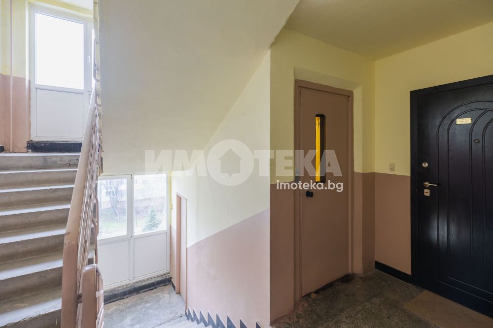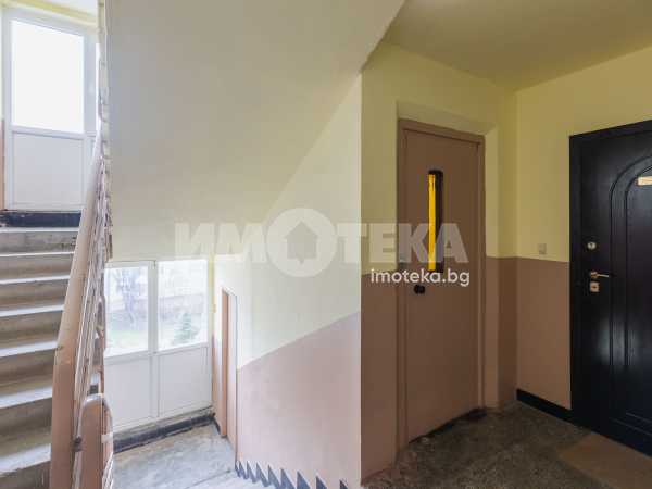 Панелна сграда с отлично поддържани общи части, асансьор, домофонна система и контролиран достъп.