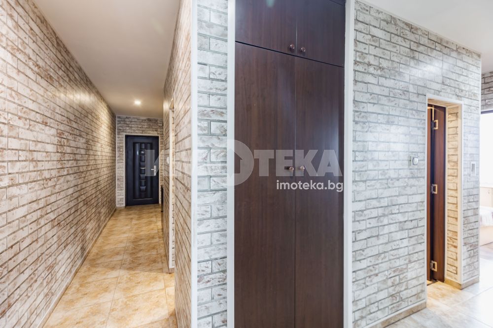 Жилището се състои от три големи и светли спални, всяка от които предлага достатъчно пространство за комфортно обзавеждане и лично уединение. Холът е приветлив и удобен за семейни събирания и почивка, а кухненският бокс е практично обособен и напълно функционален. На разположение са баня и отделна тоалетна, перално помещение, коридор с място за съхранение, както и тераса.