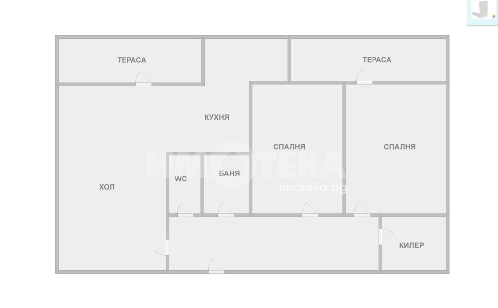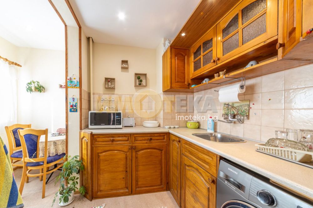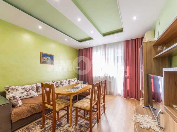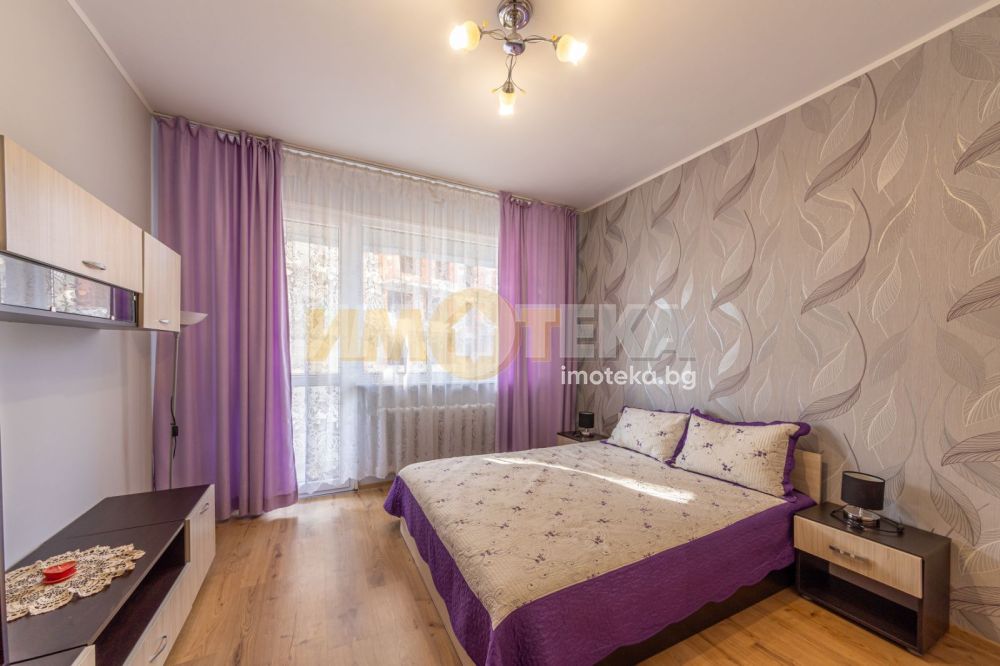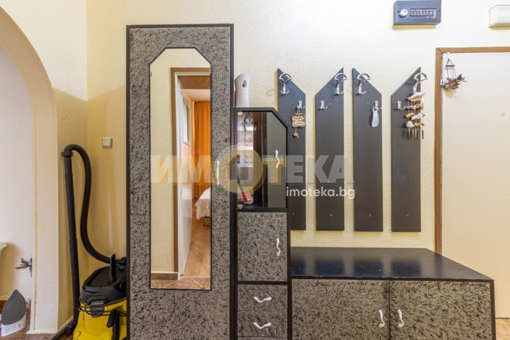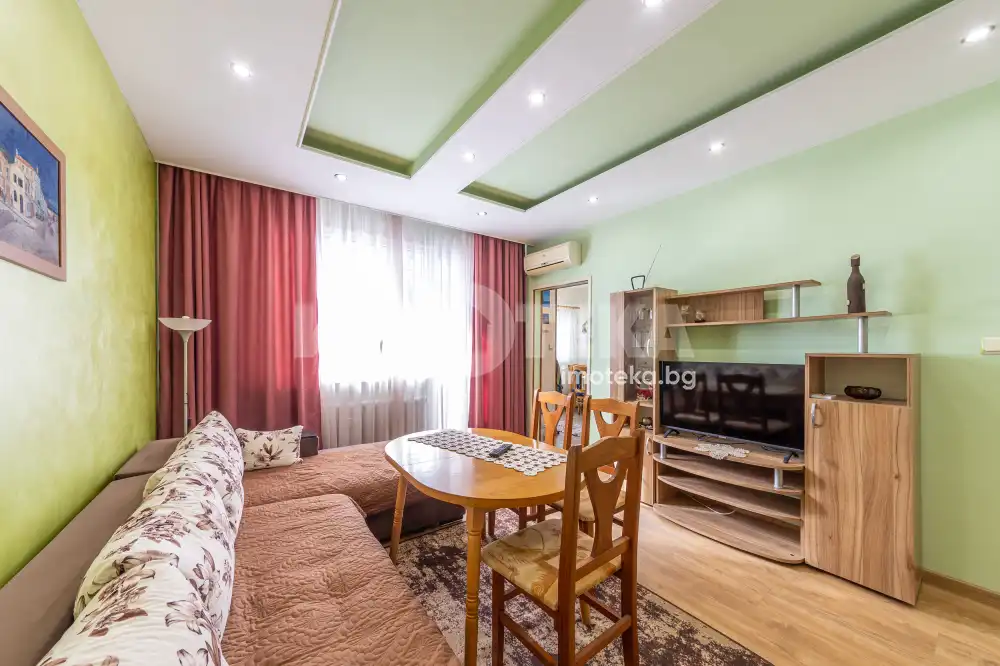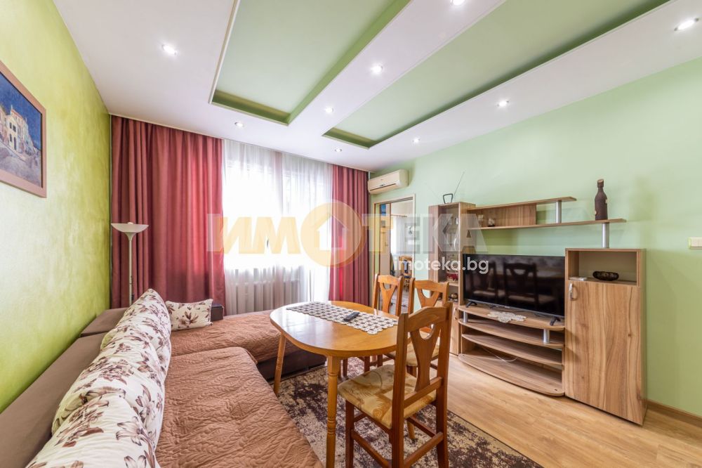 Тристаен, южен апартамент, разположен на четвърти етаж в 8-етажна панелна сграда. Жилището се състои от коридор, просторен хол с тераса, кухненски бокс с трапезария с излаз на тераса, две спални, едната с тераса, баня, тоалет и килер. Апартаментът се предлага напълно обзаведен и оборудван с всички необходими електроуреди за едно домакинство. Отоплението е с ТЕЦ. има климатик в хола.