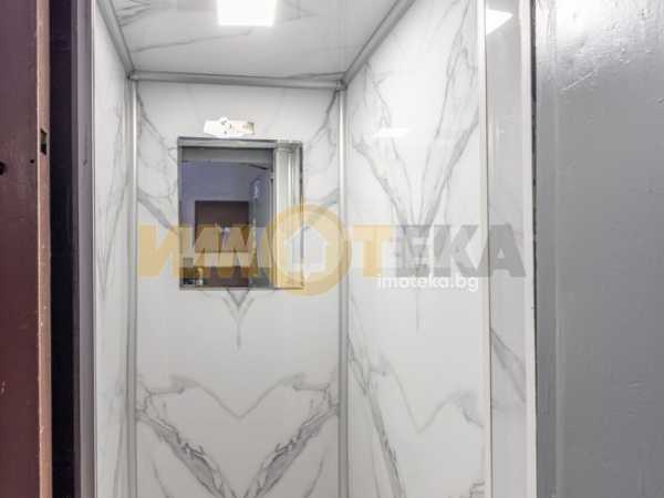 Панелна сграда с много добре поддържани общи части и контролиран достъп във входа.
