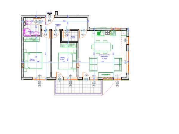 Слънчев тристаен апартамент, с източно изложение. Жилището се състои: