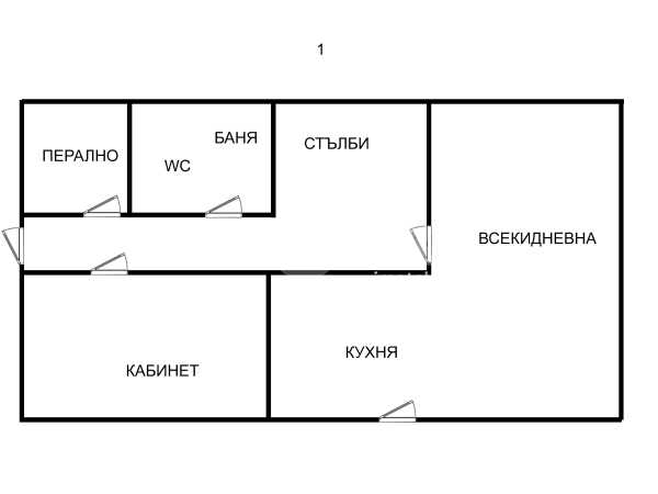 На първо ниво са разположени: коридор, баня с тоалетна, перално помещение, кабинет /спалня на гости/, просторна дневна-площ 95 кв.метра.
