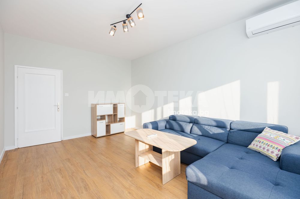 Тристаен апартамент във "Възраждане 2", до клиника "Нова". Жилището е разположен на среден етаж и се състои се от: кухня с трапезария, хол, спалня с дрешник, баня, тоалет, коридор и тераса пред хола. Апартаментът е частично обзаведен и оборудван, в много добро състояние, без преход. Към жилището има избено помещение.