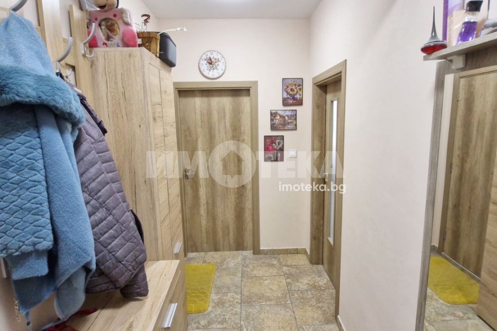 Двустаен тухлен апартамент, разположен на втори етаж в шестетажна сграда с асансьор. Жилището е с чиста жилищна площ от 52,61 кв.м и се състои от входно антре, просторен дневен тракт с кухненска част и тераса, спалня, баня с тоалет в едно помещение и килер. Изложението на имота е юг-запад. Много топъл и светъл апартамент, готов за нанасяне.