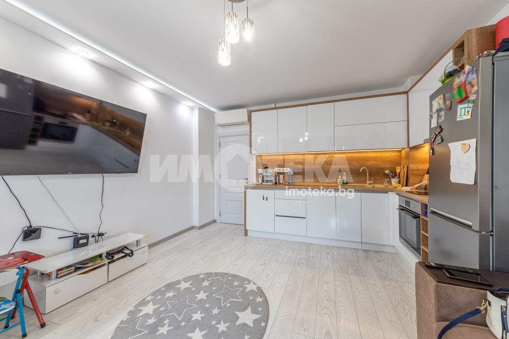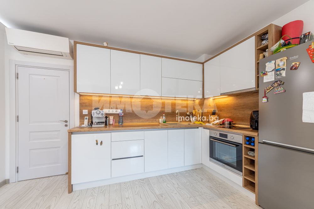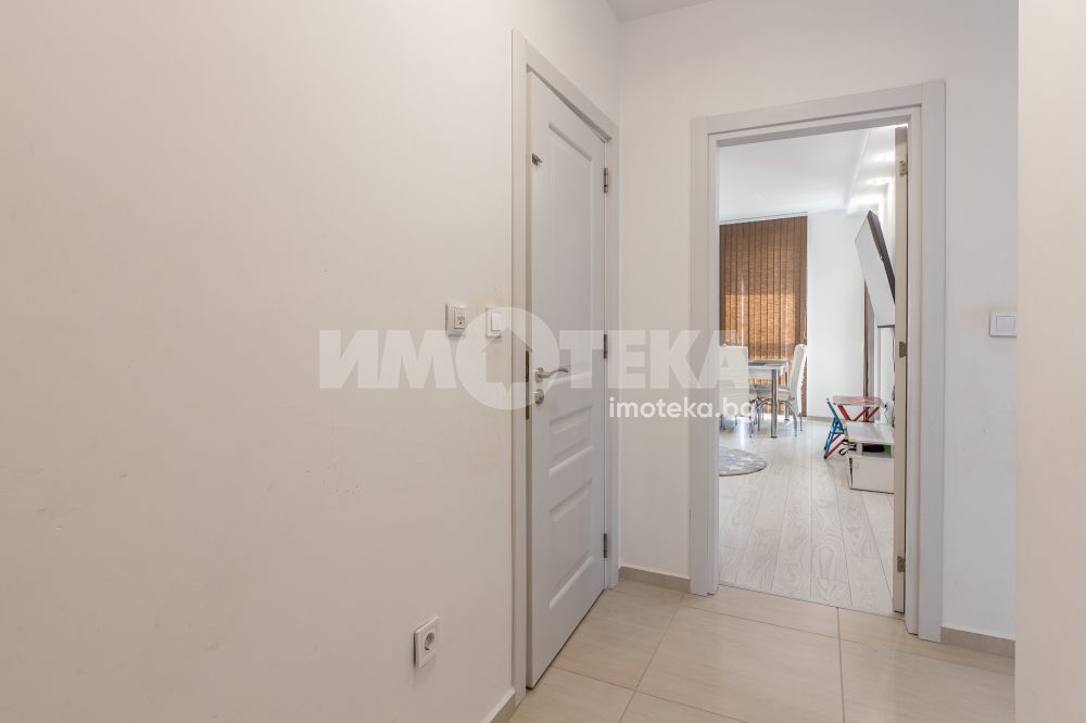 ИМОТЕКА продава тристаен тухлен апартамент, който се състои от дневен тракт, две спални, санитарен възел, тераса и коридор. Изложение юг - запад. Продава се полуобзаведен. Слънчев апартамент и с възможност за покупка на паркомясто.
